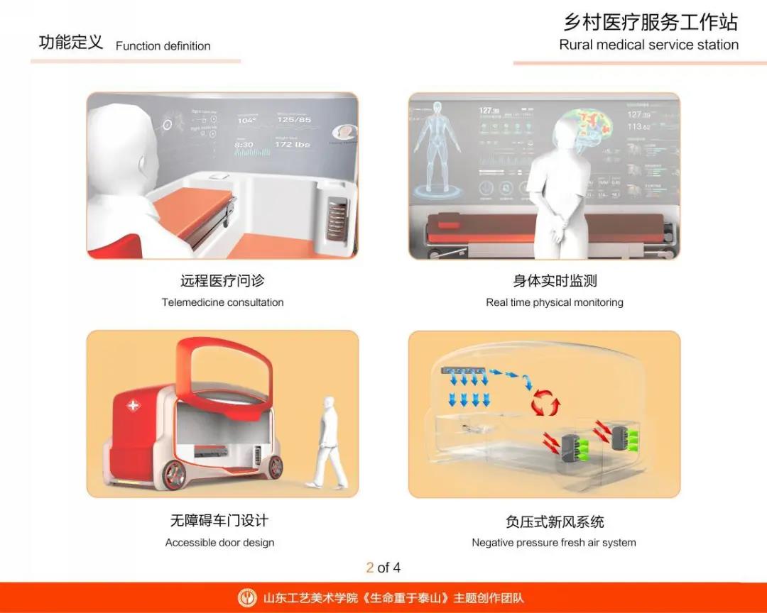 在本次主题创作中“乡村医疗移动服务工作站”设计,关注了不同空间以及群体的疫情防控方面,特别是针对交通欠发达的偏远乡村而设计。该乡村医疗移动服务工作站,造型小巧但却五脏俱全,车内可加载相关专业检测与诊疗仪器,内部还配有网络诊疗设备、基础药物。同时,还设置了负压式空气控制系统,可实现车内空气利用负压通过控制空气流动来控制病毒传播。乡村医疗移动服务工作站以例巡出诊的方式在各乡村点定期出诊,病患可通过语音问诊,实现零学习操作。普通病患通过医疗工作站问诊,即可实现获知病症、后期治疗方式建议、用药建议及基础药物领取的服务。传染病患者在被确诊后,医疗服务站内负压式空气控制系统开启,可将患者安全运送至医疗机构治疗。
