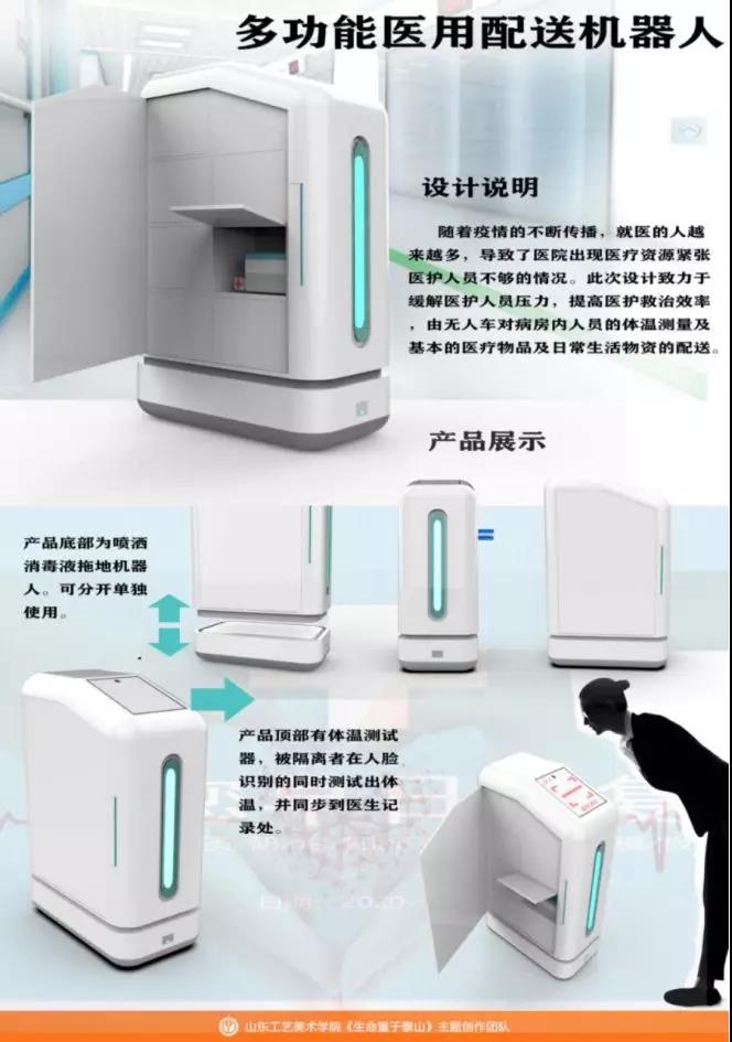 本次工业设计学院师生秉持“以人为本”的原则,在防疫攻坚战中贡献设计智慧,带来了从个人防护到公共设施,从医疗设备到智能医疗机器人的诸多设计。