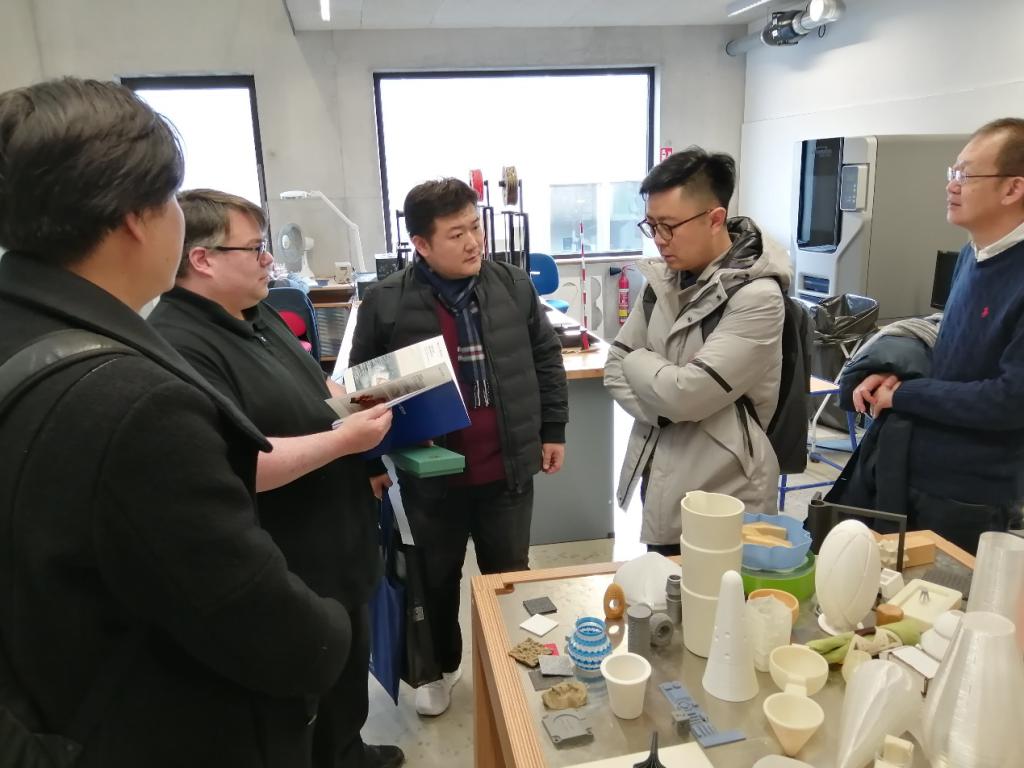 应法国洛林大学邀请,304am永利集团官网工业设计学院派遣王延羽、林宇峰、张焱、付志伟四位教师于12月10号-16号前往洛林大学进行研修交流。团队对洛林大学工程学院、商业学院、艺术与设计学院与法国国立计算机及自动化研究院分别进行了参观交流,与Simbiot科研团队负责人Laurent Ciarletta副教授等研讨艺术与3D打印程序的跨学科合作,与艺术与设计学院Christelle Kirchstetter教授等组织《交通工具设计》工作坊,与网络、系统和服务系负责人Y-Qiong教授等座谈工业设计专业学科建设,与Jean-Yves Marion教授等座谈信息技术研发与产品设计教学结构。团队通过参加洛林大学工业设计与信息系统设计学术交流会等活动,深入了解洛林大学协同创新模式,就智能化信息产品设计课程结构设置所包含的教育理念、程序设计与人机界面终端的关联等教学方法进行深入交流,参观了LORIA研究所人工智能机器人实验室以及智能无人机实验室。