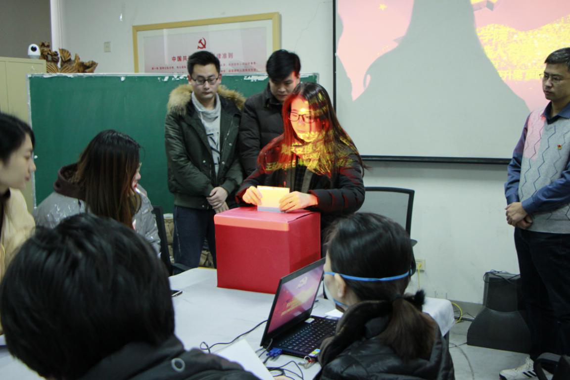 之后,大会通过了王海霞同志宣读的《工业设计学院党员大会选举办法(草案)》,并由大会表决通过了“党总支委员候选人名单”和“监票人、计票人名单”。大会以无记名投票的方式差额选举出王延羽、王海霞、张振羽、张焱、姬升果(按姓氏笔画为序)组成学院党总支新一届委员会。