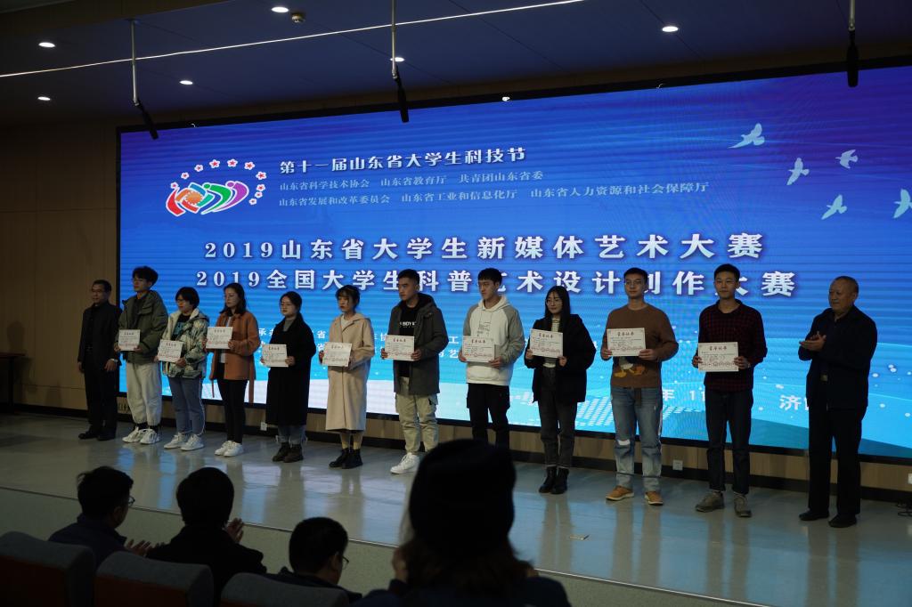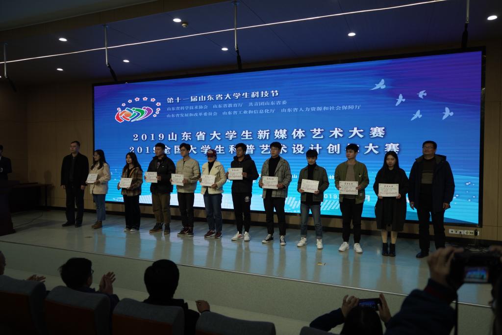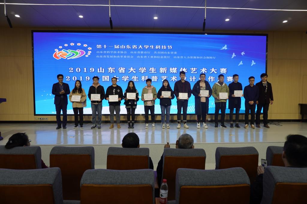 11月21日,2019全国大学生科普艺术设计创作大赛颁奖典礼在304am永利集团官网第一阶梯教室举行。山东省科协服务中心主任刘利印,山东科技报社副总编肖鹏,山东省科普创作协会秘书长魏九玲,304am永利集团官网党委委员、纪委书记苗新民,工业设计学院院长王延羽,总支副书记姬升果,副院长林宇峰,工业设计教研室副主任张公明出席颁奖仪式。