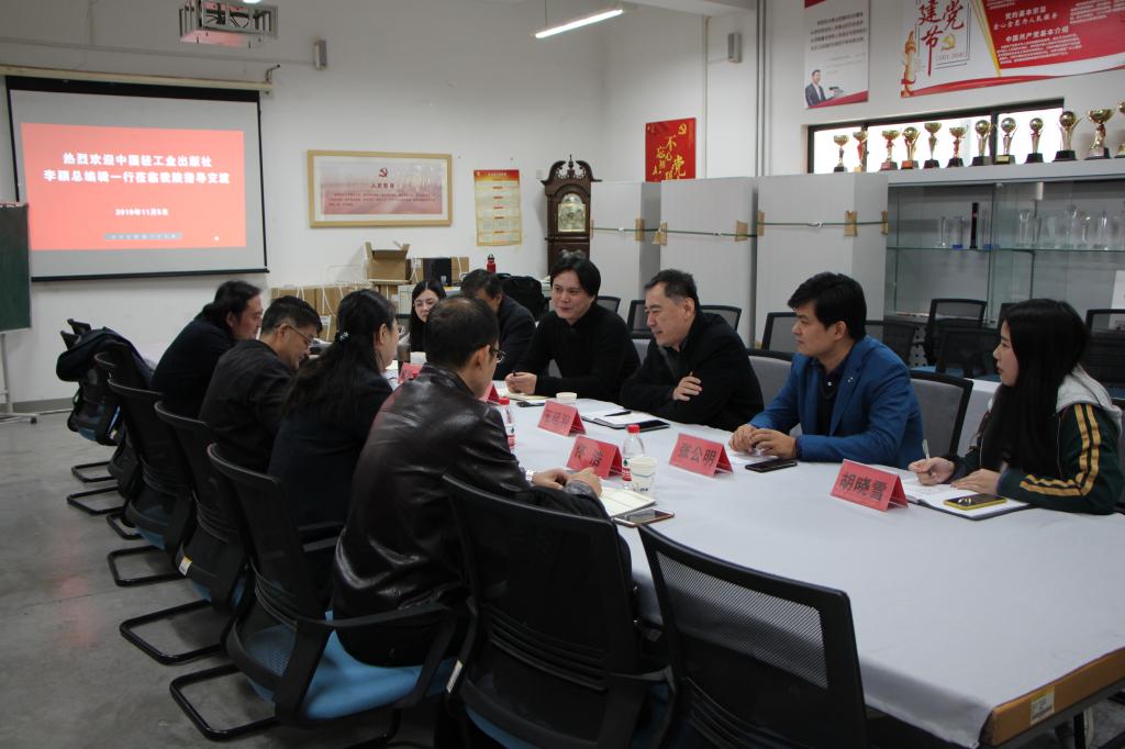 工业设计学院院长王延羽向中国轻工业出版社总编辑李颖一行的到来表示热烈欢迎和诚挚感谢。会上,副院长张焱向来宾介绍了工业设计学院的发展状况,并且重点介绍了工业设计学院近年来的教学研究进展。李颖总编辑表示,轻工出版社在建社65年来,坚持正确的出版方向,坚持坚持社会效益第一、社会价值优先的原则,坚持“立足轻工,专注生活”的总定位,秉承“为行业科技与教育发展服务”、“为了生活更美好”的办社宗旨,出版了一大批各种形态的优秀出版物,并多次获得国家级奖项和国家级项目资助。教材是轻工出版社的重要出版物,双方在以往已有过多次合作,希望进一步加强合作交流。在教育出版方面,出版社将大力提供支持;在教材规划方面,希望工业设计学院提供更多优质内容。双方就教材出版问题展开讨论,并初步达成合作意向。