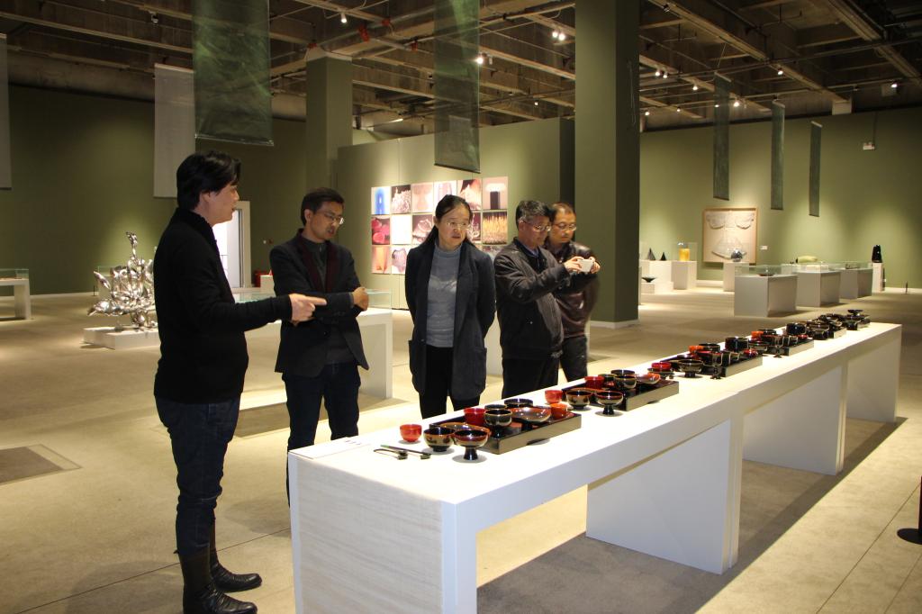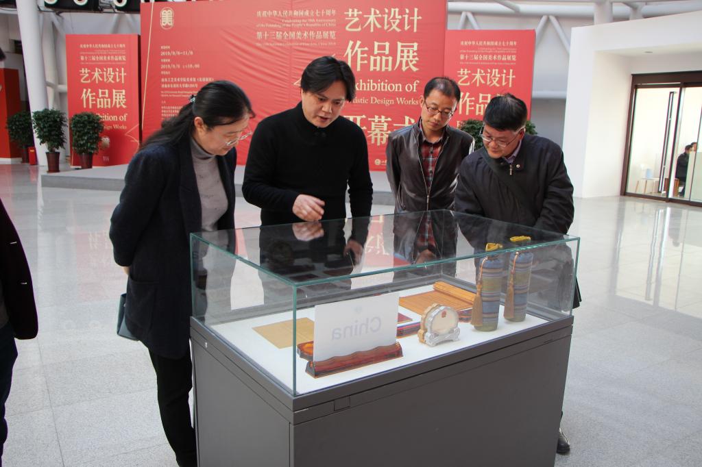 座谈会后,李颖总编辑一行在副院长张焱和产品教研室副主任曹培峰的陪同下参观了正在永利官网美术馆展出的“第十三届全国美术作品展览艺术设计作品展”。