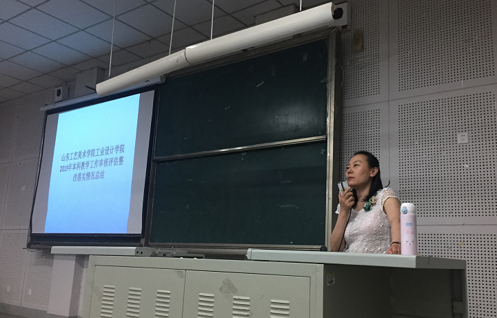 6月18号,工业设计学院副院长张焱、产品设计专业主任王艳、副主任曹培峰、工业设计专业主任付志伟、艺术与科技专业主任韩卫萍、王君秋老师、徐帅老师、李训一老师分别对本学院16、17、18三个年级的学生进行了三场迎接评估动员会。辅导员徐帅老师、李训一老师分别就评估期间的注意事项对学生们宣讲;王艳主任就2019年本科教学工作审核评估整改落实情况进行总结,主要做好以下几点: