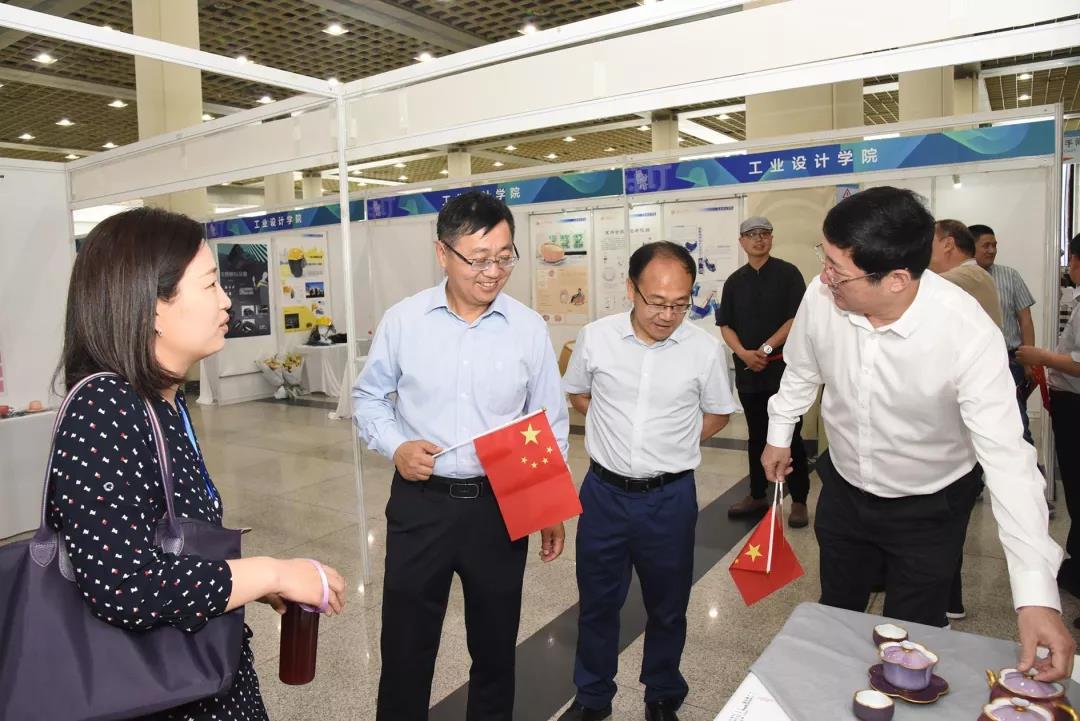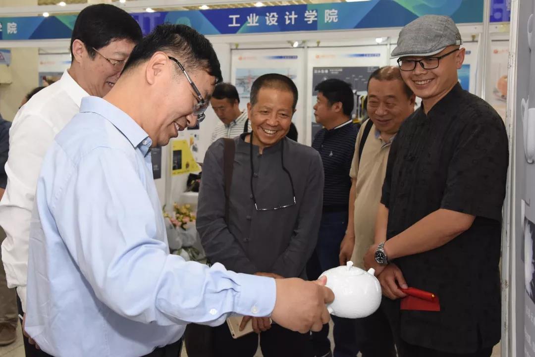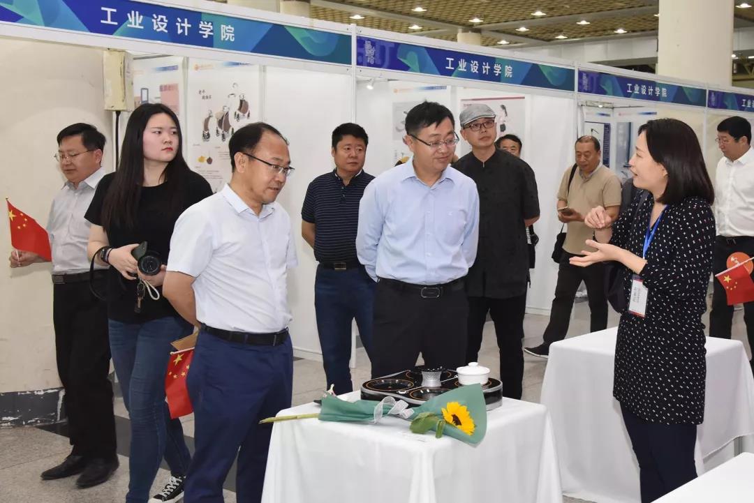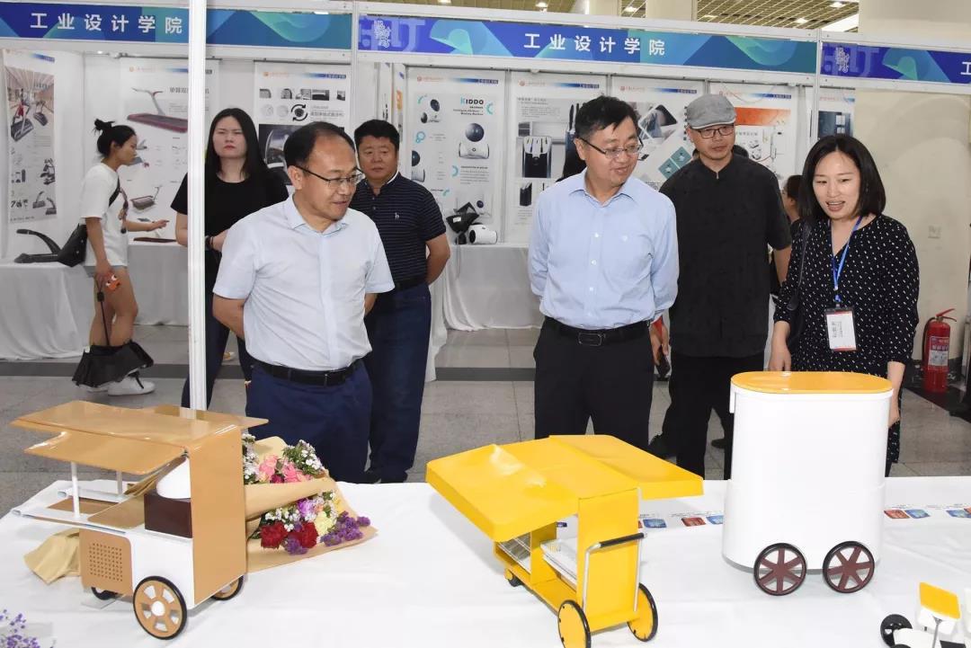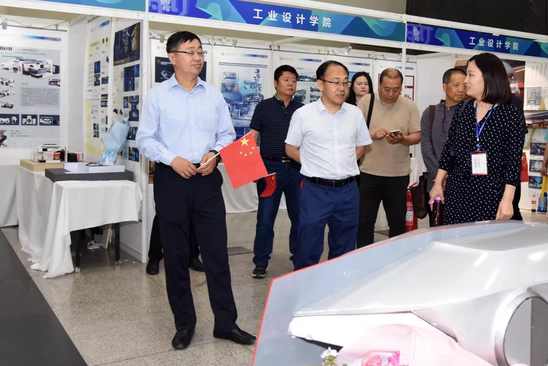 5月19日上午,山东省教育听副厅长关延平一行在304am永利集团官网副院长董占军的陪同下,来到工业设计学院展区参观指导。