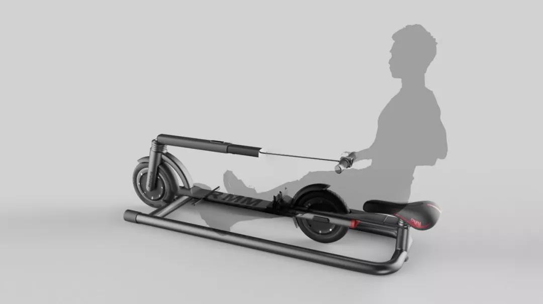 这是一件作为城市内短途代步工具的设计,方便于上班族换乘公交地铁后的最后几公里路程,或是去到就近场所。使用过后,可以将其折叠,携带在身边。工作之余在办公室里,下班后在家中,可将它变身为划船机进行健身,并可以利用健身产生的势能转化为动能。在使用者利用其作为划船机健身的同时,通过四肢运动带来的外力作用,将ATP生物能量(生物体内最直接的能量来源)转换为机械能,再根据法拉第电磁感应定律原理,通过切割磁感线圈再将机械能转换为动能。这种储能方式既安全又环保,转化而来的电能被储存在大容量锂电池机组中,可以极大地增加代步工具的续航里程。因此平衡车在实现其作为一种交通工具的使用价值的同时,又给使用者带来日显奢侈的运动功效,既满足日常生活所需,又能增加锻炼身体的机会,通过能量利用率的最大化,进而实现既经济、健康又低碳环保的最大化社会效益,一举多得。