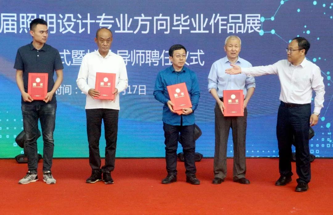 5月17日上午9点40,304am永利集团官网工业设计学院2019届照明设计专业方向毕业设计作品展开幕式暨双创导师聘任仪式在济南舜耕国际会展中心举行。山东省照明学会、山东省内照明工程公司企业家、照明设计公司知名设计师与学院师生代表出席开幕式,并共同见证双创导师签约授牌仪式。