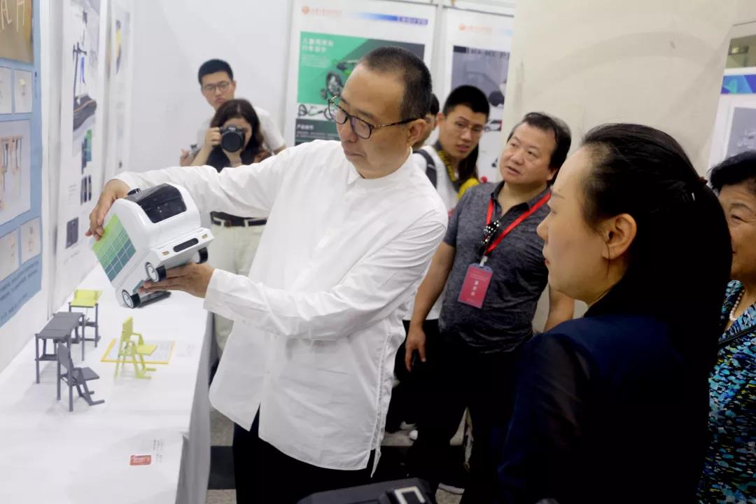 工业设计学院张振羽书记、张焱副院长、产品教研室负责人王艳副教授、梁碧蓉老师和张蕾老师陪同参观并负责展区作品的讲解。