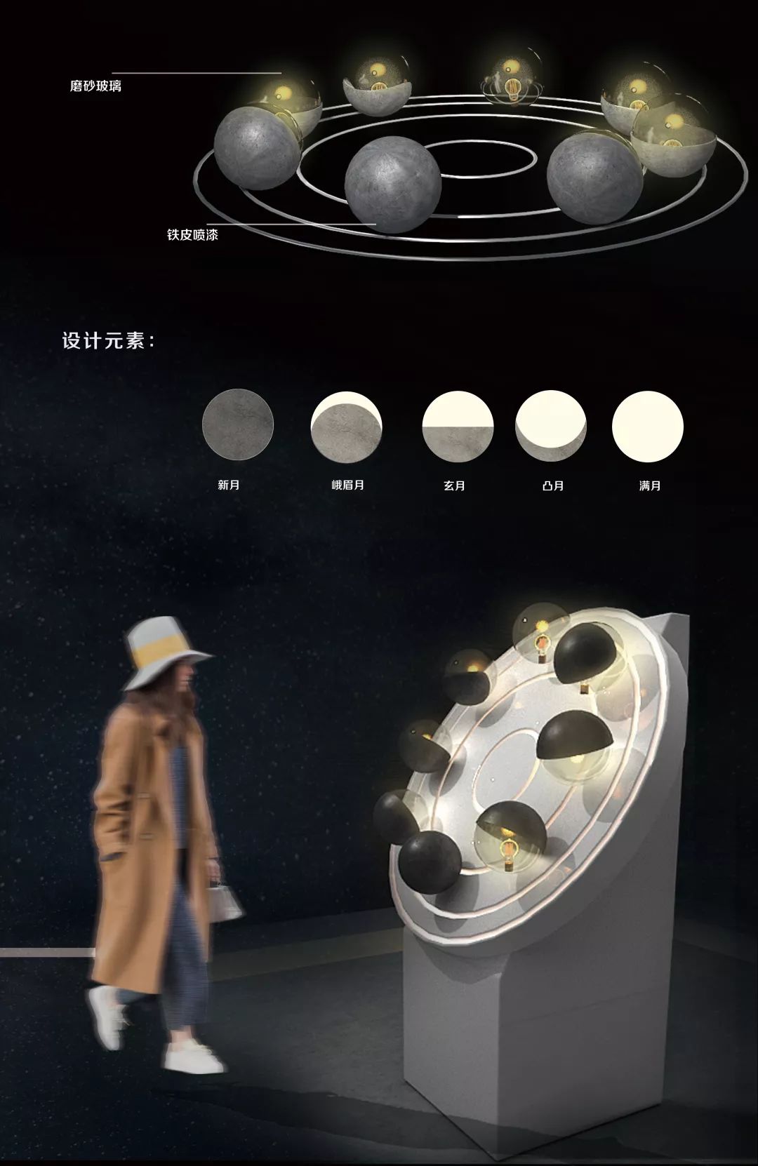我们活在浩瀚的宇宙里,我们仅仅只是这个庞大时代的小小碎片。是什么让我们与众不同?是什么让我们引人注目?是差异,微茫难以让人记得,差异使人注意到我们的精彩。差异的合集让我们彼此聚拢、重合、然后组成一个光芒四射的月球。世界万物各异,同一种事物也难以以相同的形态出现。本灯光装置以月相变化的形态作为造型元素,体现韵律与变化,令人印象深刻。