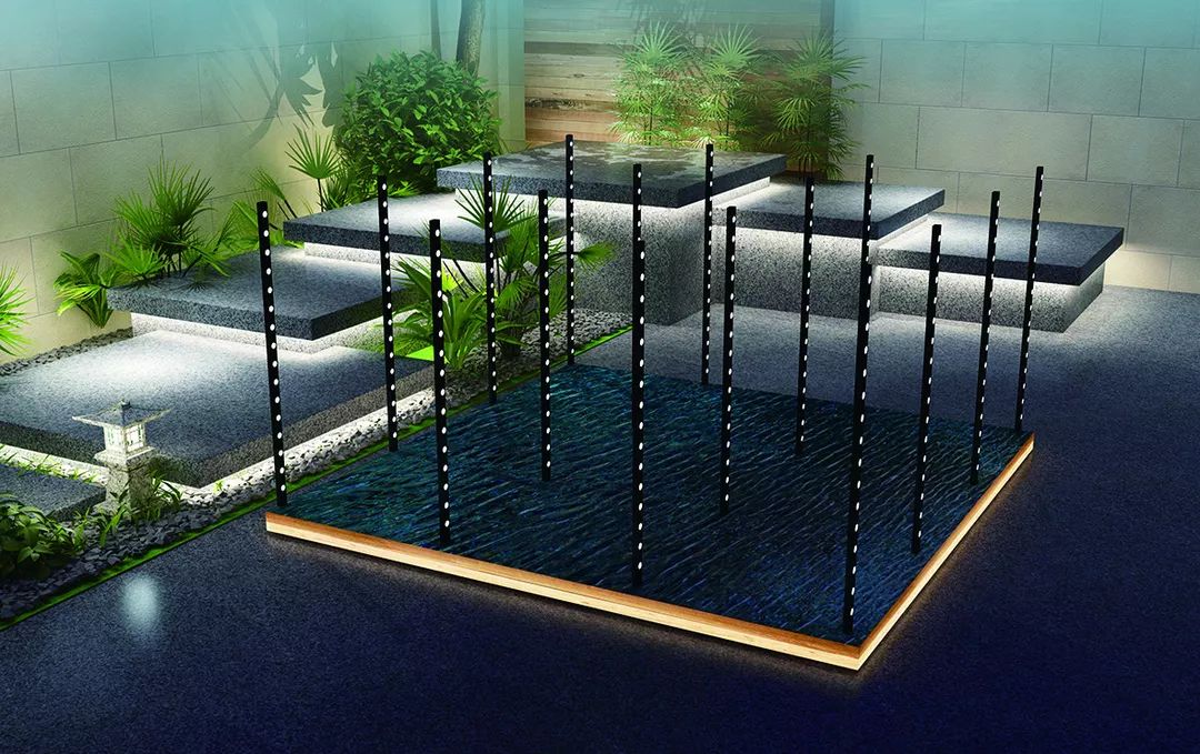 灯光装置与泉城济南的泉水联系在一起,跳动的灯光仿佛喷涌而出的泉水,用灯光闪烁的效果表现出济南泉水喷涌的形态,呼吁大家保护泉水,承载独具匠心的内涵意义。