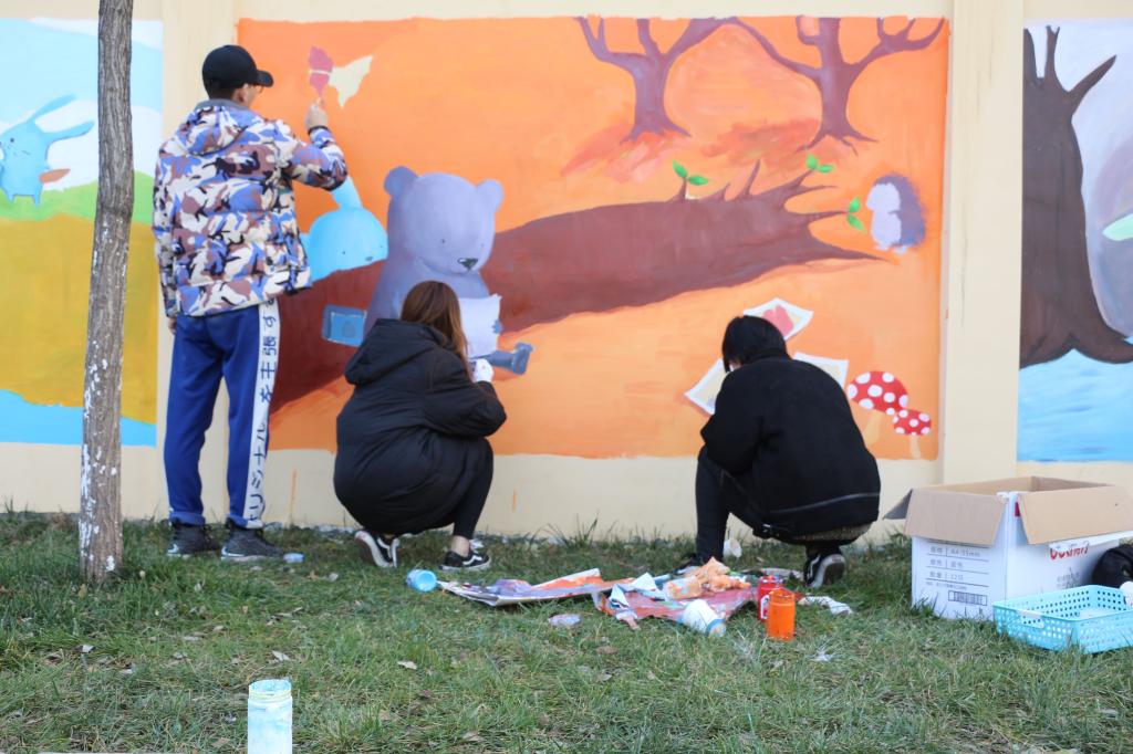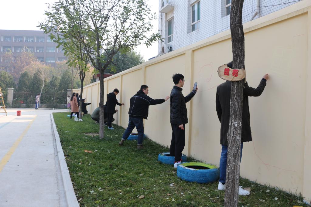 11月24日,工业设计学院组织2018年第二期入党积极分子前往山东女子学院附属幼儿园进行《我也是这样地爱着你》主题墙绘创作。
