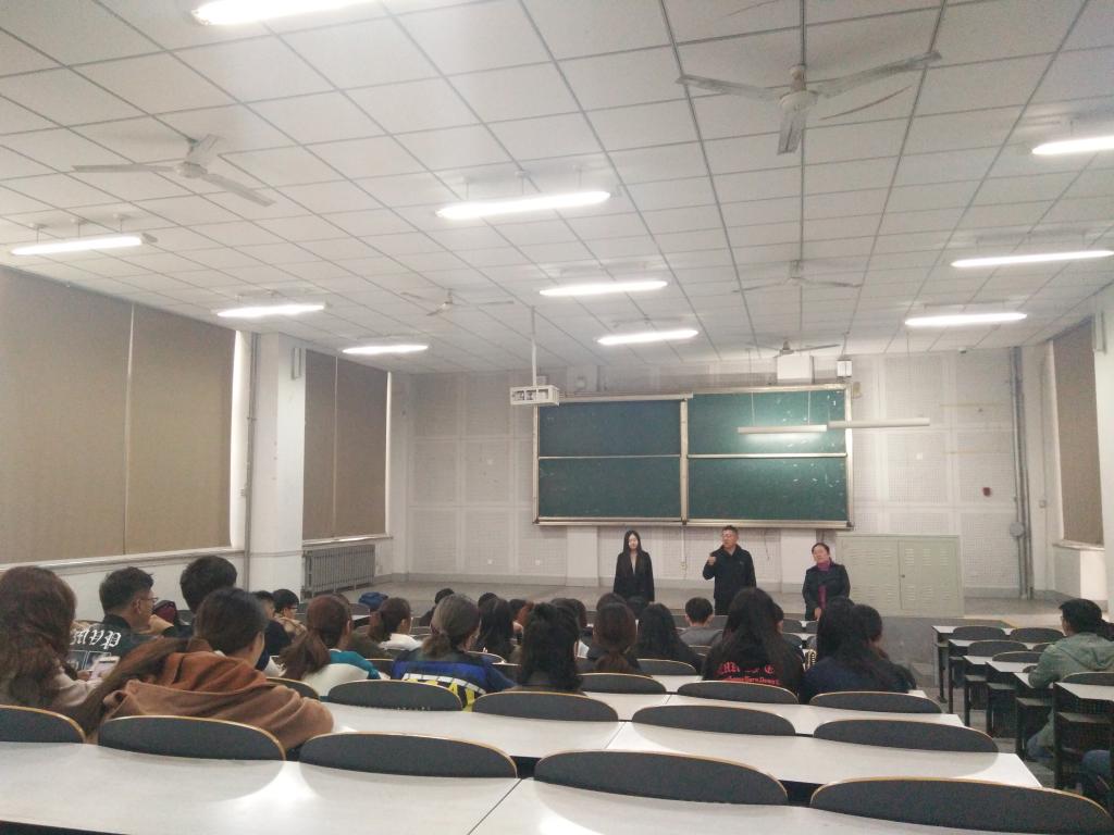 2017年11月7中午 服装学院于四合堂召开学风建设大会,参加本次会议的有大一至大四全体学生班干部以及学生会全体成员,主持本次会议的有于浩、徐珊珊辅导员。