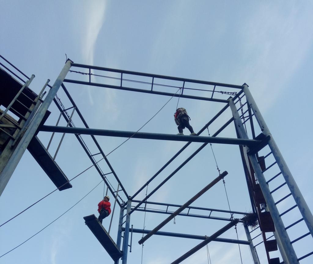 本次活动于“世纪园”进行。活动中,所有同学分为九队,每队各有自己独特的队名、队徽及队歌,活泼别致,妙趣横生。本次活动大致分为三个环节——智力游戏、射箭游戏和高空挑战。其中,智力游戏包括“巧移圣塔”和“趣味猜数”,射箭游戏包括“射远练习”与“小组对战”。在这三个环节中,同学们配合默契,开动脑力,大展了一番身手。尤其在“高空挑战”环节中,同学们挑战自我,克服恐惧,出色的完成了任务,展现了我院同学直面困难,不轻易言弃的精神,值得赞扬!