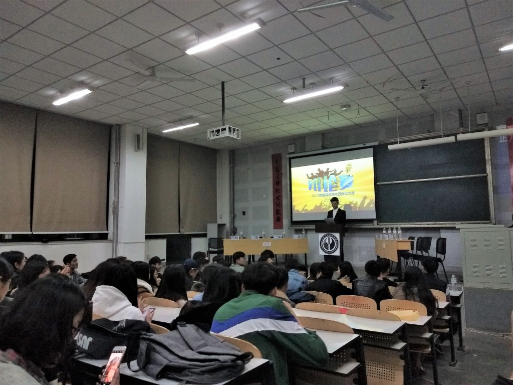 2017年11月3日晚,由服装学院学生会学习部主办的辩论赛在教学楼第七合堂展开。双方辩手来自于各班级成员和系学生会成员。比赛特邀服装学院主席团和其他学院主席为嘉宾,由服装学院往届最佳辩手担任评委。