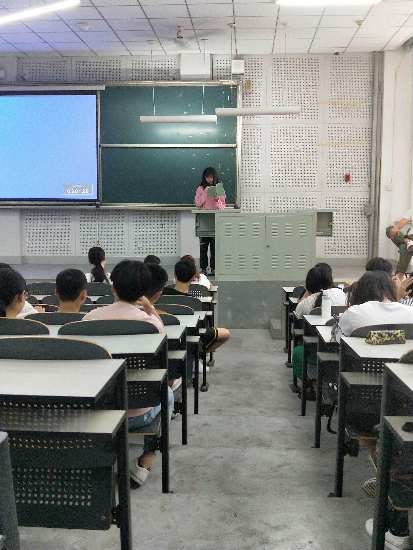 讲座的开始,于浩老师让同学们上台诵读大学生行为准则等校规校纪,方便加深同学们的印象。同时,于浩老师教育同学们在大学里要学会自我管理,通过校规校纪,严于律己。随后,于浩老师为大家讲解了学分制、学籍管理、学生违纪处分、考试违纪等方面的规章制度。讲座期间,于浩老师通过几个生动形象的举例,使整场讲座气氛意兴盎然。