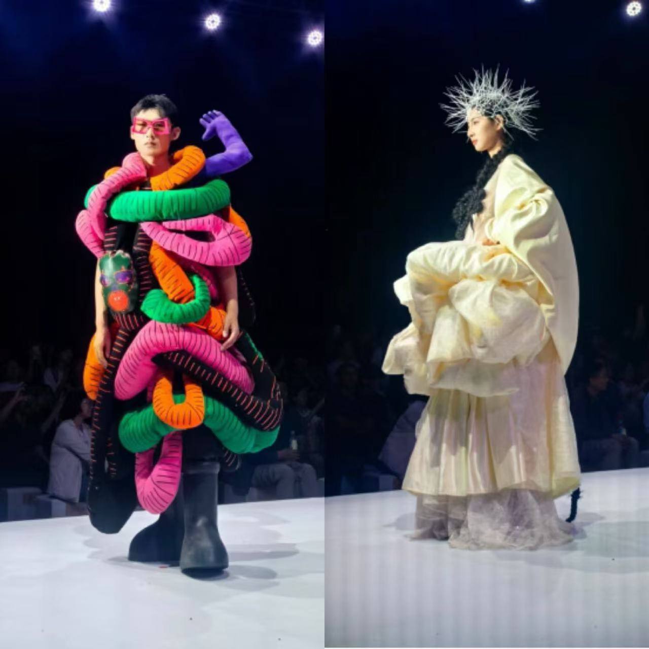 静态展共计48套作品,设计作品兼顾艺术与实用,审美与功能并存,展现了毕业生的创意与才华,他们用扎实的专业基础和创新思维,将中国传统服饰文化、可持续时尚等内涵融入到设计作品中。
