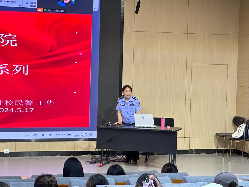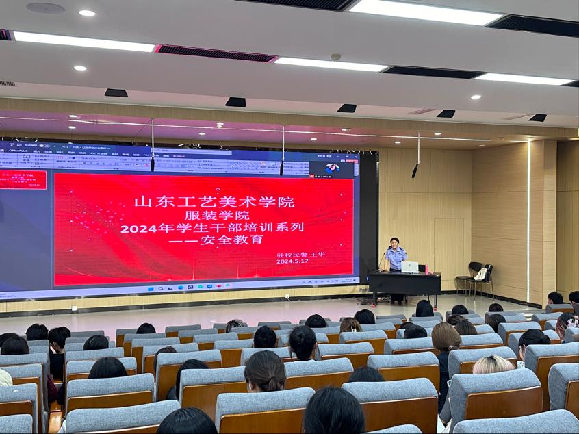 2024年5月17日下午,服装学院干部培训之安全教育于第一阶梯教室成功召开。此次培训由服装学院团总支书记王苏主持,特邀济南市公安局长清区公安分局驻校民警王华为学生讲解,旨在全面提升大学生干部的安全意识和应对能力,为校园的和谐稳定保驾护航。