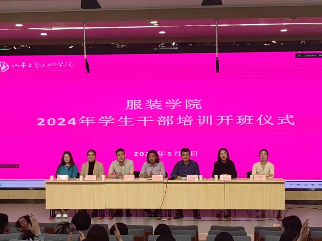 2024年5月8日下午,服装学院在长清校区第一阶梯教室举行学生干部培训开班仪式。院长李杰、党总支书记杨磊、副院长沈汀、辅导员王苏、刘怡宏、任晴参加。党总支副书记刘广栋主持开班仪式。