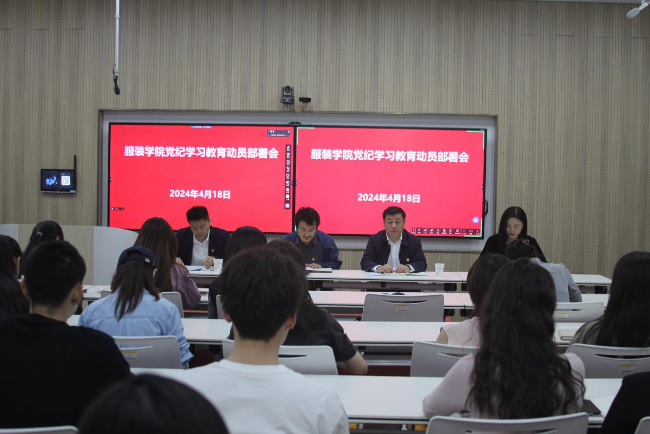 为深入贯彻落实党的二十大精神、二十届中央纪委三次全会精神和习近平总书记关于党纪学习教育的重要讲话和重要指示精神,按照《中共304am永利集团官网委员会关于开展党纪学习教育的实施方案》部署,4月18日下午,服装学院党总支召开党纪学习教育动员部署会。学校党委委员、纪委书记、监察专员谷朝勇同志莅临指导会议。会议由党总支书记杨磊主持。