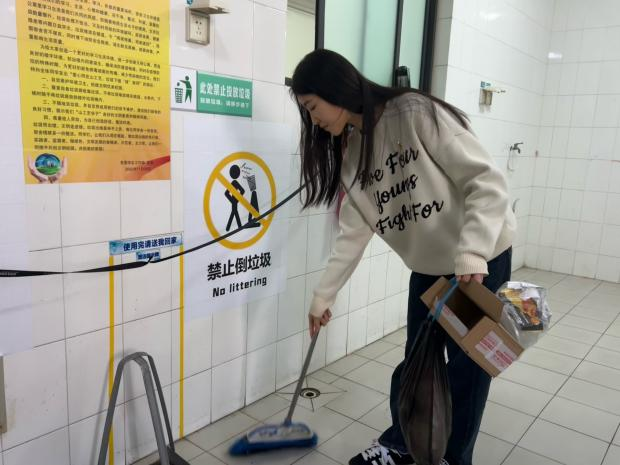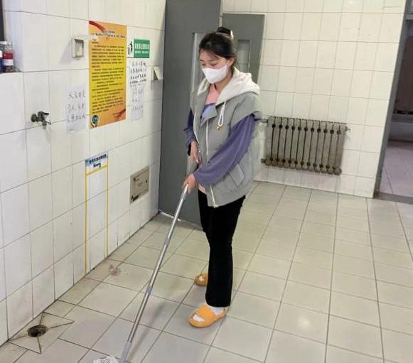 活动中,全体学生党员佩戴党徽,亮出党员身份,按照划分的卫生区域进行打扫。学生党员们干劲十足,不放过任何一个卫生死角,认真打扫厕所堆放的垃圾、杂物。学生党员以身作则、自觉地将垃圾带下楼,充分发扬不怕苦、不怕累、不怕脏的精神,保持自己宿舍及厕所公共区域的环境卫生整洁,及时做到垃圾清理,与同学们共创美好空间。