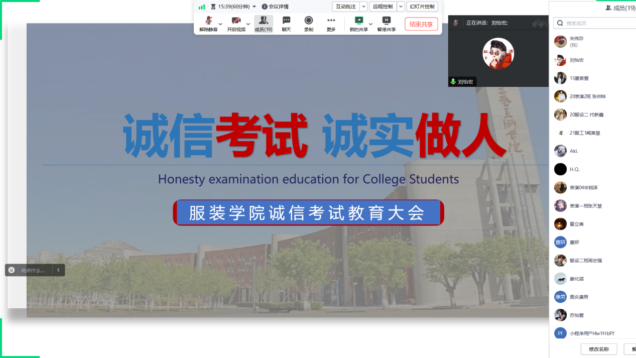 最后,通过考风考纪的强调,对端正诚信考试的态度,树立诚信考试作风发挥了积极作用,增强了同学们考试的诚信意识和纪律意识。此次会议的成功举办,体现了我院重视考风考纪及诚信教育的正确理念。今后,服装学院将继续健全诚信教育工作机制,加大诚信教育工作力度,为加强学风建设、培养学生的诚信品质、构建诚信校园而努力奋斗。