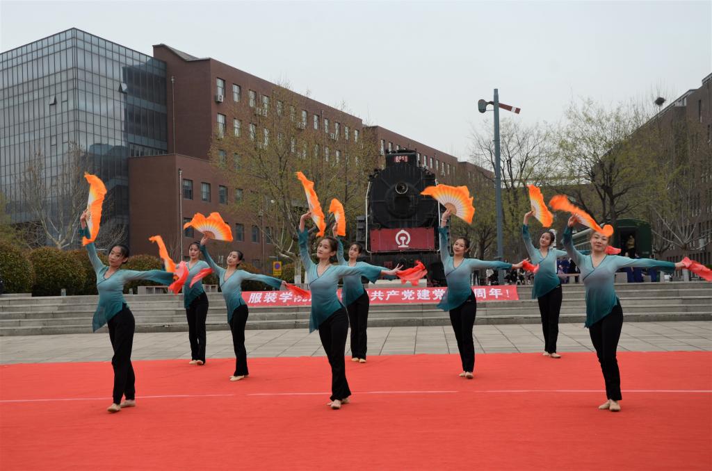 快闪活动旨在用舞蹈、服装表演的方式,抒发师生对党的赤忱热爱。活动主要包含两个场景:一是舞蹈表演专业的学子,用三支舞蹈表达了同学们“始终坚持党的领导,听党话跟党走”热情满满的自豪与幸福感的真情告白,展现青年学生从党史中汲取精神力量,放飞青春梦想,昂扬向上的精神状态;二是表演的学子踩着音乐节拍,精神抖擞,朝气蓬勃,目光坚定地走在广阔的舞台,表达了青年学子“心中有信仰,脚下有力量,走好新时代长征路”的决心和信念。