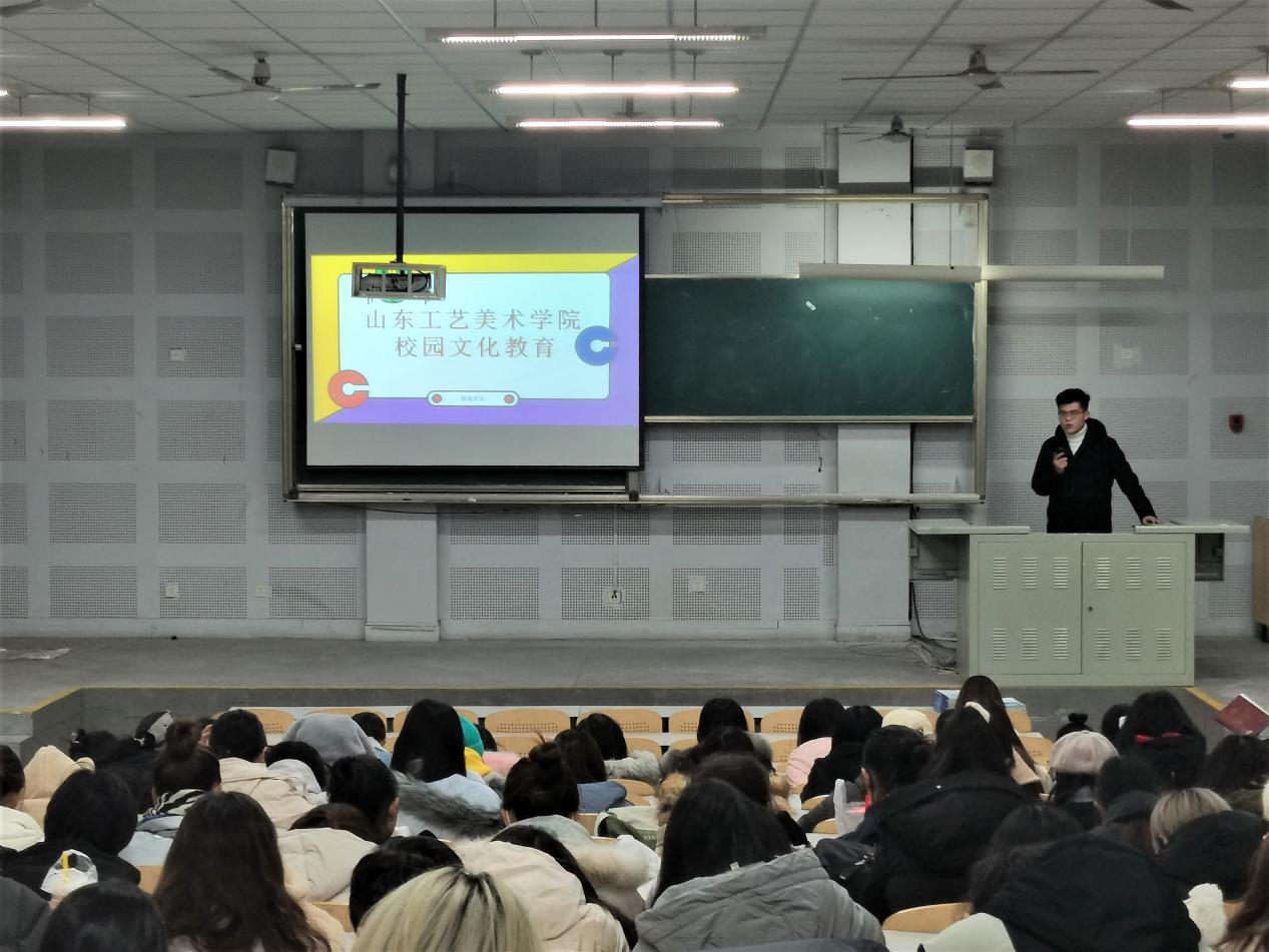 12月7日下午6点,服装学院学生会主席胡一帆组织我院2020级全体新生于长清校区十合堂开展服装学院新生团课——校园文化教育。