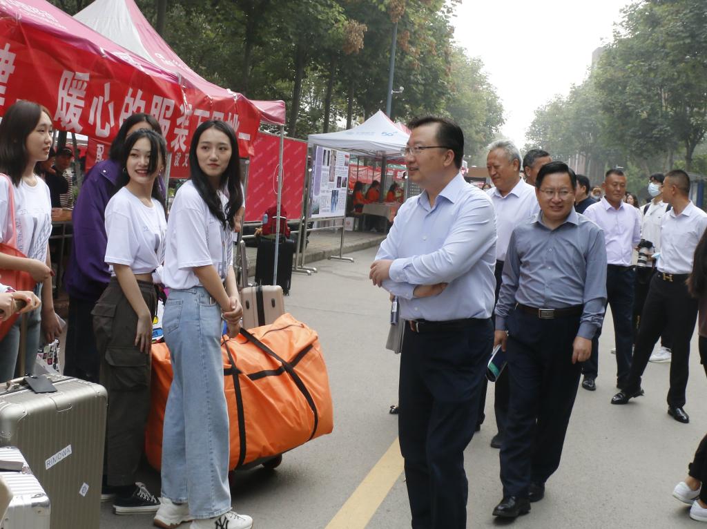 金秋送爽,天高云淡,又一批莘莘学子踏上了大学征程。9月25日,来自全国各地的服装学院2020级140名大一新生陆续在长清校区报到。校领导何思清、苗登宇、李新、苗新民、韩世春及有关部门负责人莅临迎新现场指导工作并与新生进行亲切交流,服装学院党总支书记张利对迎新工作做了介绍。