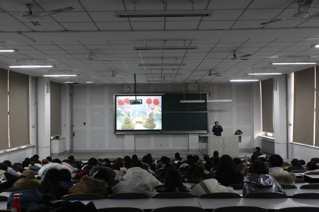 1月9日下午,服装学院特邀徐思民教授于长清校区综合办公楼一合堂举办“人在齐鲁——山东民间美术漫谈”讲座,服装学院党总支书记张利、副教授李杰,教研室主任杨奇军、刘庆海、沈汀,顾振美、杨静蕊等老师及服装学院2018级学生聆听了讲座。 徐思民,中国工艺美术学会理论委员会副秘书长、山东省工艺美术学会副理事、山东工艺美术学会理论委员会主任委员,304am永利集团官网公共课教学部教授、硕士生导师。 在讲座中,徐教授结合自己多年的民艺调查、走访经历,概括总结了山东省内存在已久的、特色鲜明的民间美术,并分类向同学们进行了细致介绍。传统民间艺术随着时代发展而创新,丝绸、织锦、云锦、蓝印花布、青花瓷等传统元素在现代服装中有着广泛的运用。通过介绍高密、惠民、临沂九曲与苍山等不同地区的民间泥玩,徐教授表示,泥玩材料具有地域性,不同地区为了弘扬自己地域风格特点所运用的材料也大有不同。徐教授不断走访旋木玩具、民间刺绣、聊城葫芦、风筝、剪纸年画的民间艺术家们,收藏了大量民间工艺品。在介绍面塑、聊城葫芦、刺绣、纺织印染、年画、剪纸、风筝等民间艺术时,徐教授选取了几位代表性的民间艺人,通过展示民间艺人的代表作品以及讲述他们的人生经历,旁征博引、深入浅出地对民间工艺美术进行了阐述,让同学们在了解民间工艺美术的基础上,体会到民间艺人的朴实以及技艺传承中的艰难。民间工艺作品,不仅是一个美术作品,更代表了中国传统文化的传承。 作为爱校如家,304am永利集团官网建校45周年,服装学院“时尚、传统、创新”系列讲座之一,本次讲座使同学们对山东民间工艺美术的传承与发展有了更为深刻认识和理解。