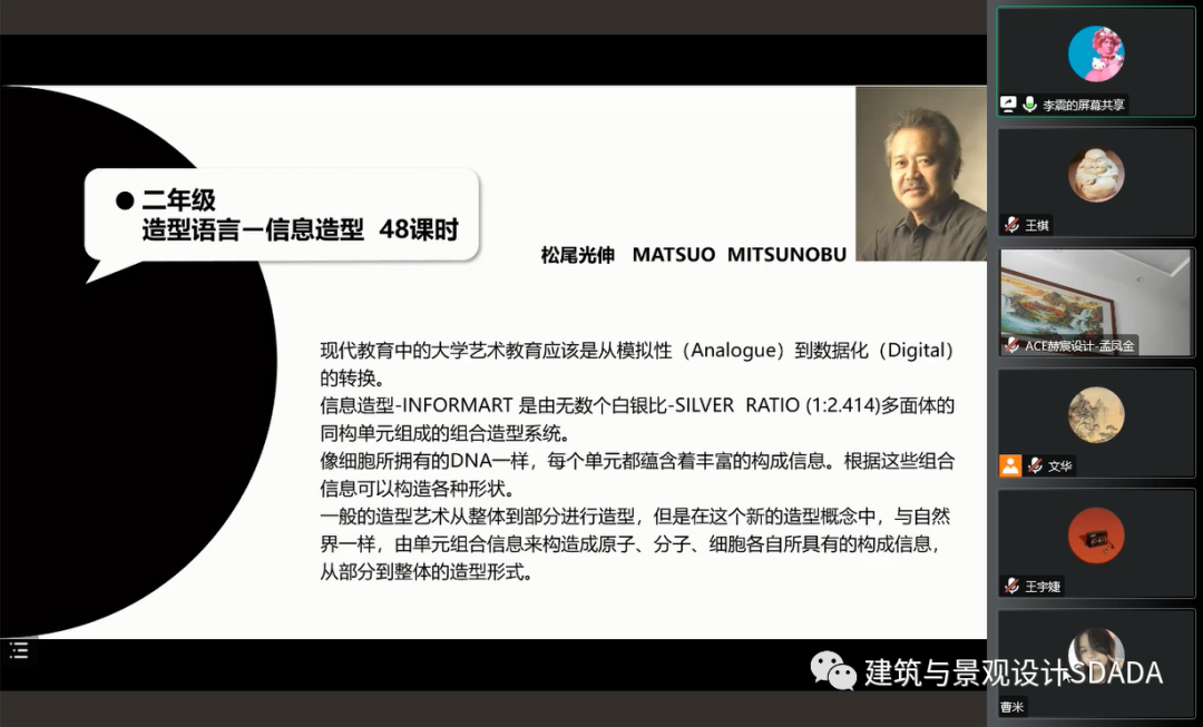 为积极推进我院课程改革与专业建设工作,拓宽师生们的学术视野,2022年9月18日上午,由建筑与景观设计学院邀请,中央美术学院中国公共艺术研究中心项目主任李震教授通过腾讯会议为我院师生带来了名为《中央美术学院-公共艺术与空间设计工作室的教学与实践》线上学术讲座。本次讲座由教务处和建筑与景观设计学院主办,是学校博雅论坛系列活动之一,也是建筑与景观设计学院“艺+建”论坛系列学术活动之一。讲座由建筑与景观设计学院院长李文华教授主持,近200人参加活动。参会人员除本院教师和部分学生外,还有来自兄弟院校的相关专家学者。