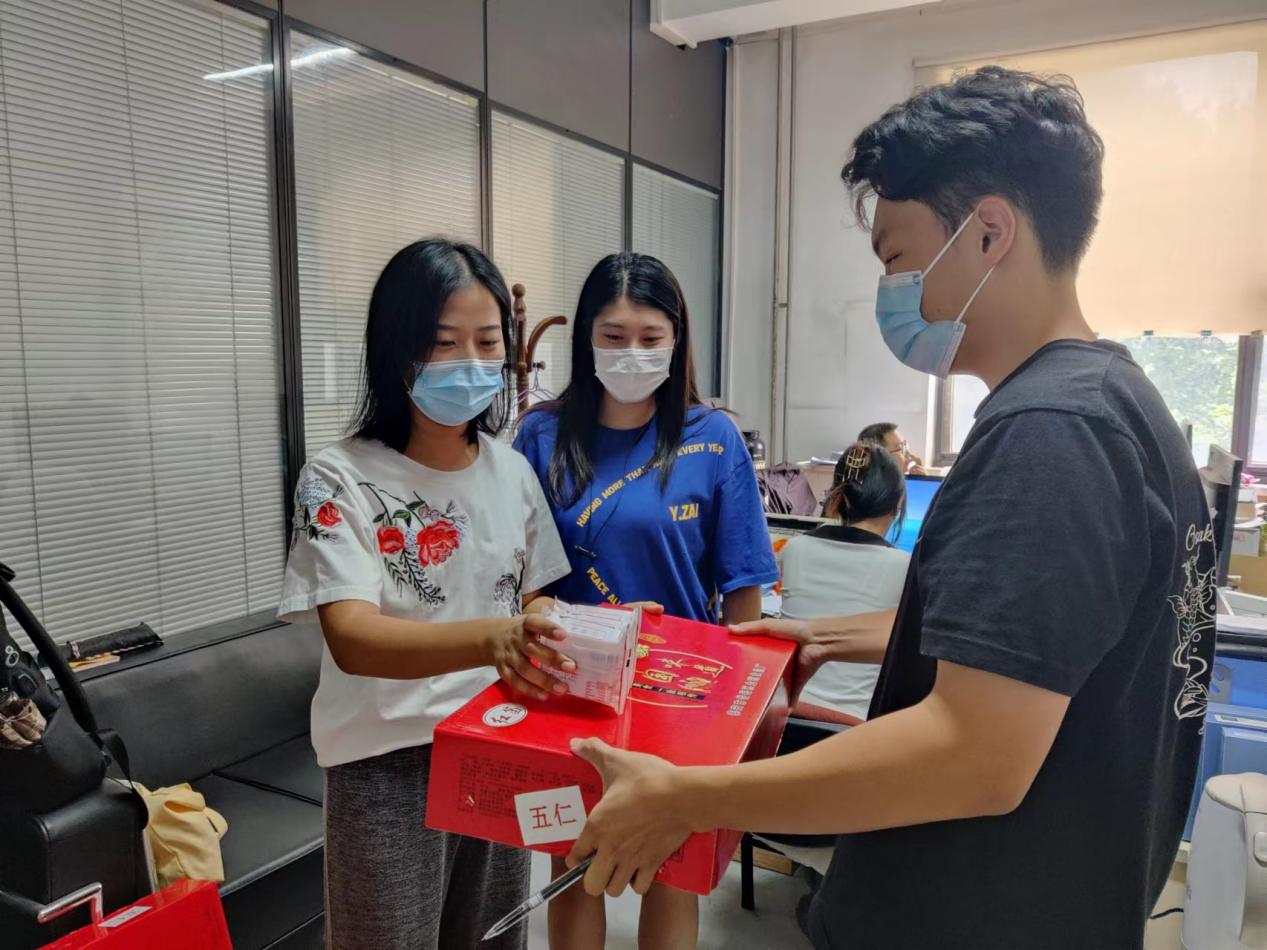 因受疫情影响,在校学生难以与家人团聚。活动中,各位辅导员老师与同学们进行亲切的交谈,表达学院对同学们的关心,询问同学们的生活和学习情况,为各班同学发放中秋月饼,提前送去节日祝福。