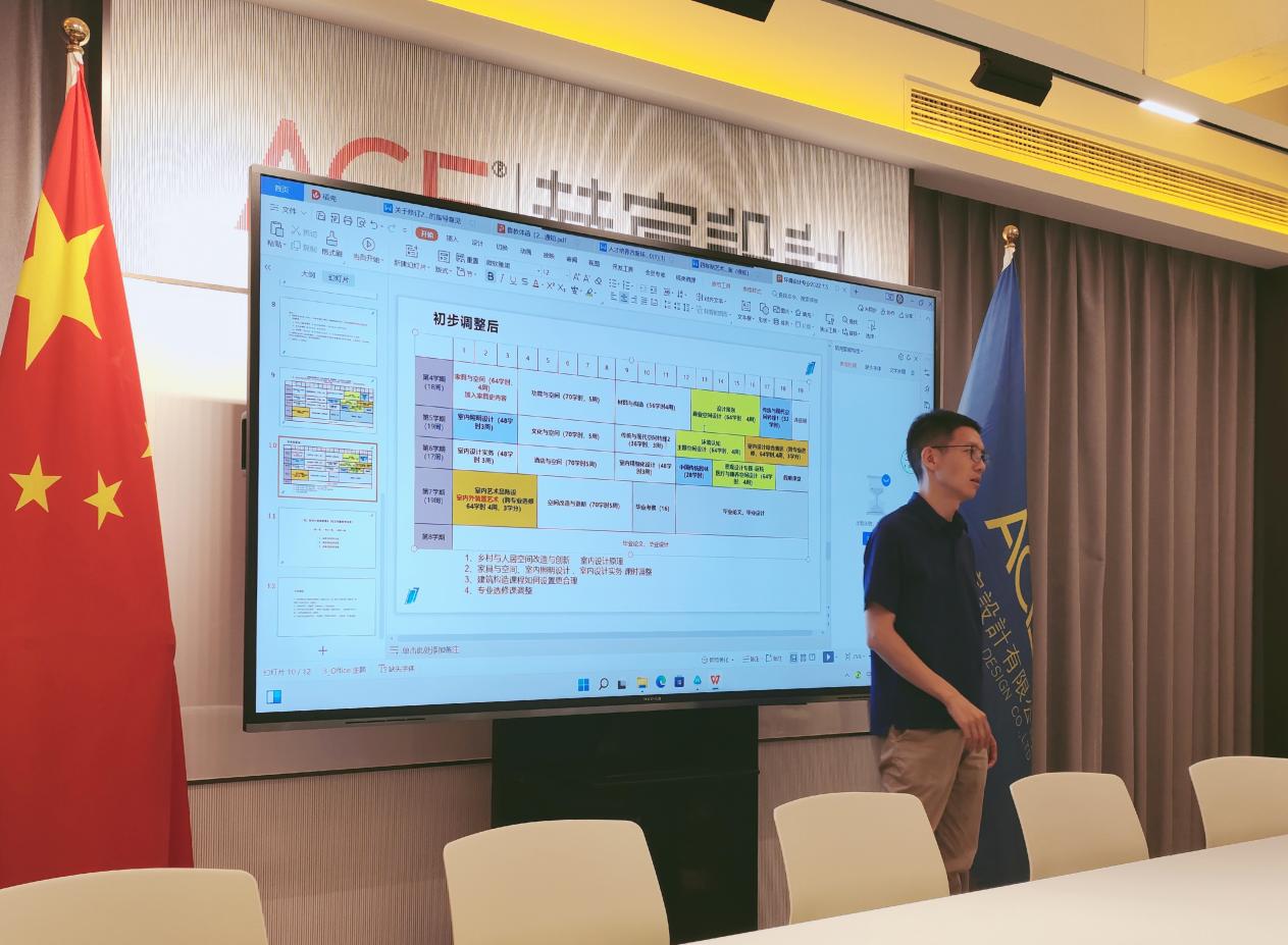 为了持续推进2022级人才培养方案修订工作,同时进一步加强校企合作,推动协同育人工作项目的深入开展,2022年7月5日上午,室内设计教研室第二次人才培养方案修订工作会议在ACE赫宸设计公司召开。本次会议由王棋老师主持,室内教研室教师参会。