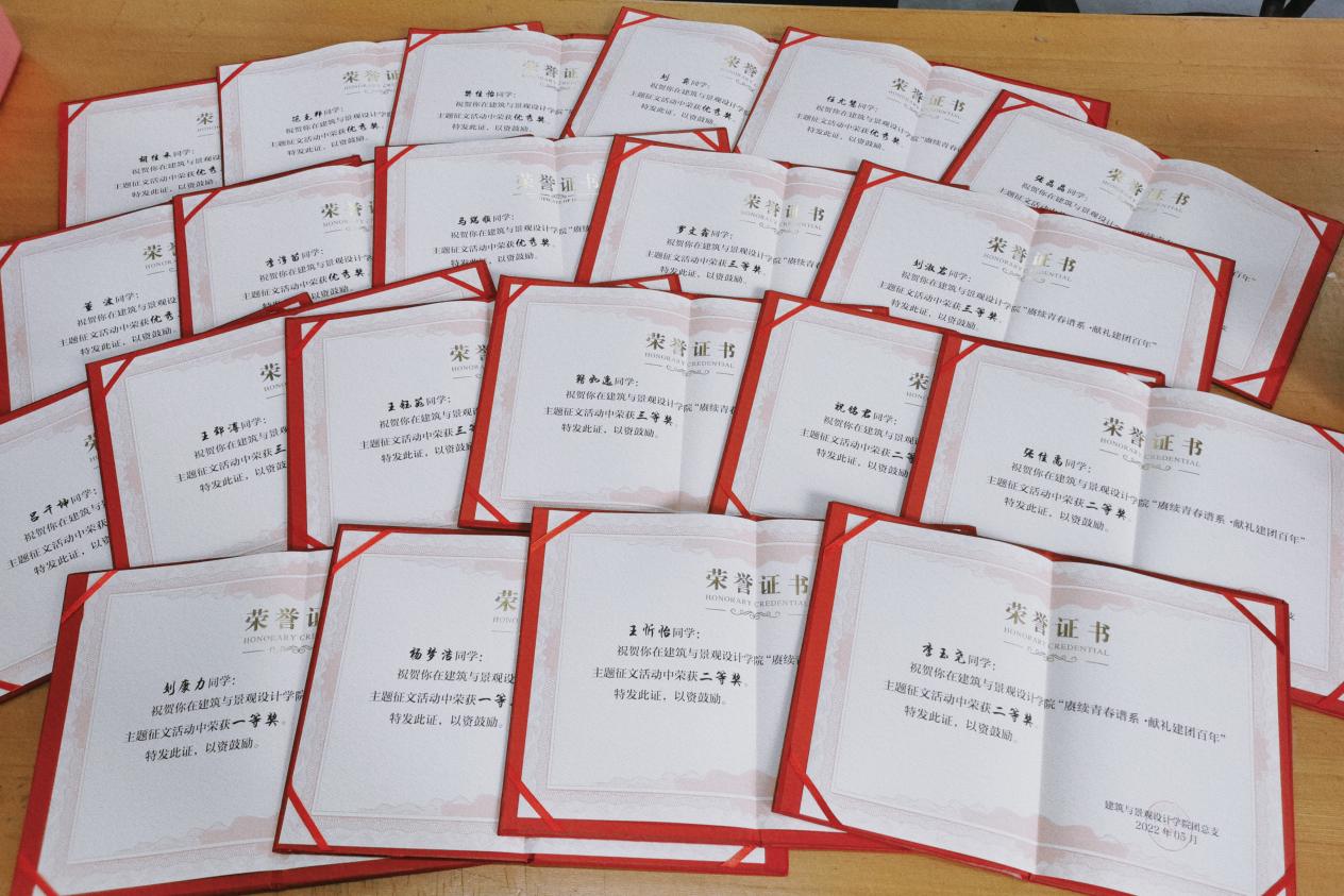 为庆祝中国共产主义青年团建团100周年,进一步引导广大学生坚定理想信念,建筑与景观设计学院团总支开展“赓续青春谱系·献礼建团百年”的主题征文活动。活动发布后,建筑学子踊跃参与,积极投稿,共收集稿件40余份。