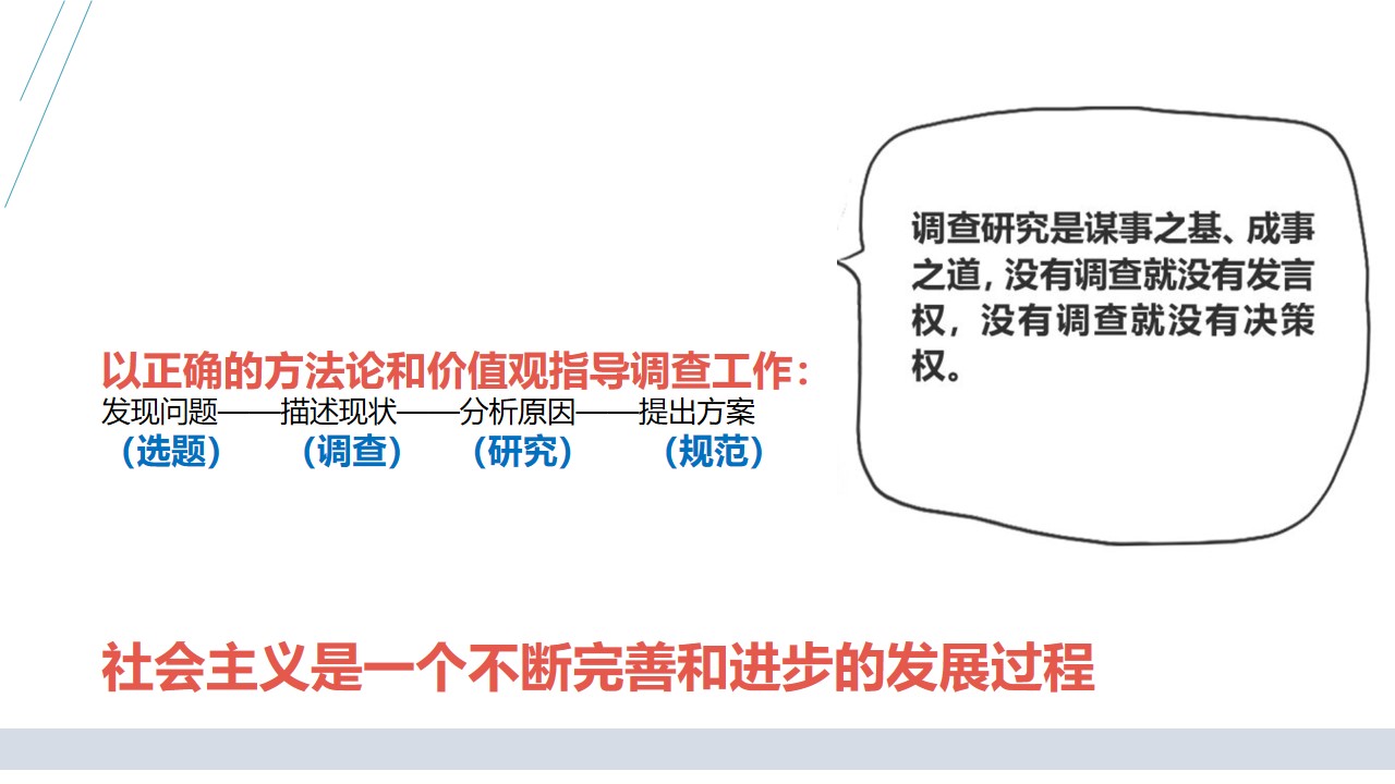 本门课程线上理论教学主要包括:回顾社会调查研究的工作程序和研究逻辑,借助优秀学生作业进行案例分析,解剖、理解“发现问题——描述现状——分析原因——提出方案”的技术路线。