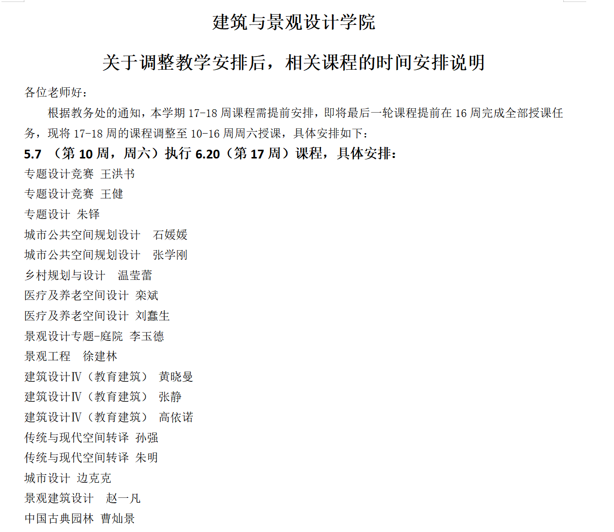 第六周线上教学平稳进入新阶段,根据学校《关于调整教学安排的通知》要求,建筑与景观设计学院及时调整教学计划,本周有更多的课程实行网络教学。现将教学情况具体汇报如下: