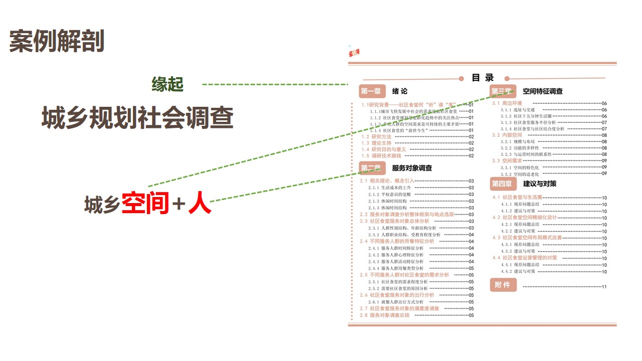 《城乡社会综合调查》是城乡规划专业核心课程之一,目标是培养城乡规划专业学生公正处理和共识建构的能力,在分析备选方案时能够考虑到不同群体所受的影响,尤其是对社会弱势群体利益的影响,寻求成本和收益的公平分配。学生通过考虑不同利益群体的不同需求,广泛听取意见,解决城乡社会矛盾,实现和谐发展。