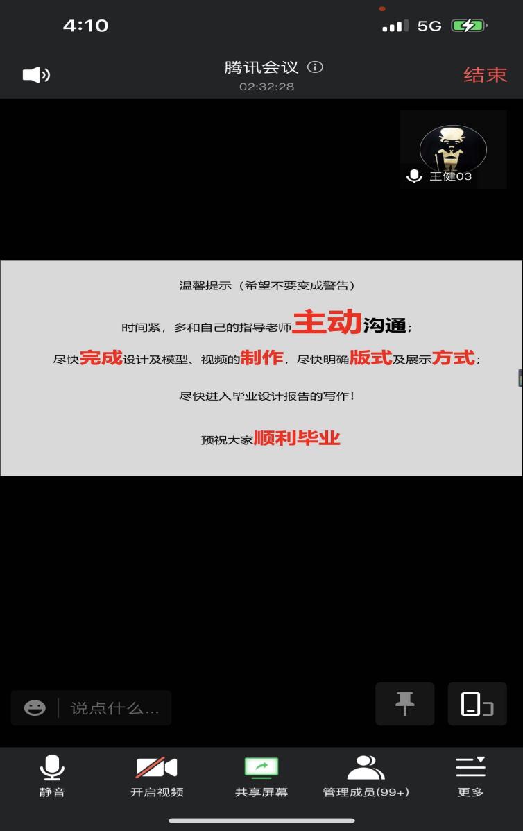 本次会议涵盖近期毕业生毕业设计、求职以及疫情防控工作各方面,为毕业生工作高质量开展打下了坚实的基础。