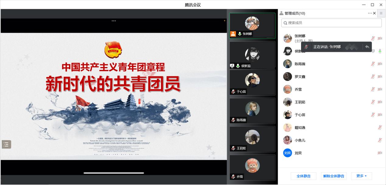 随后,各班通过腾讯会议、钉钉会议等多种线上形式,围绕“中共中央关于党的百年奋斗重大成就和历史经验的决议”、“新时代的共青团员”、“弘扬冬奥精神”等方面开展宣讲。
