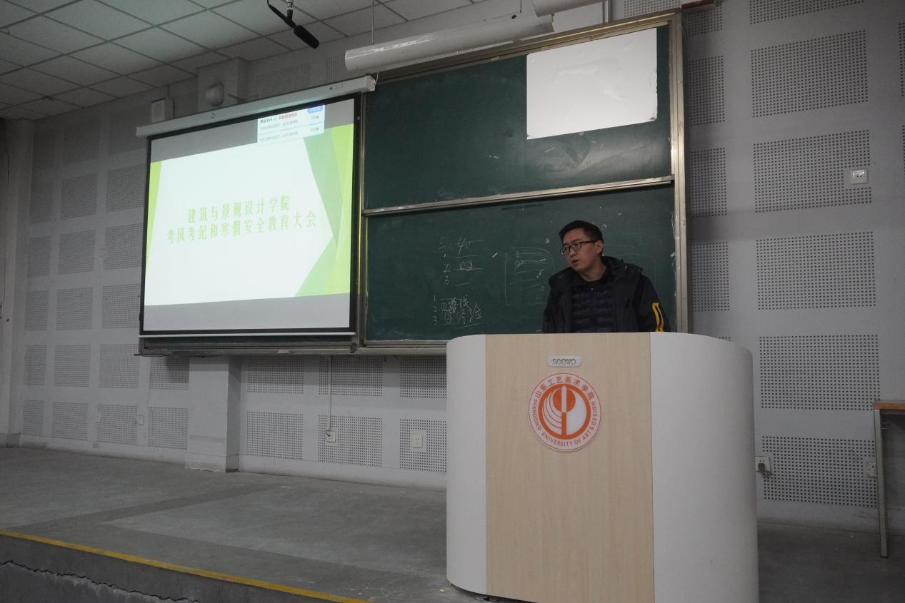 为端正考试态度,树立诚信考试观念,做好学期末考试时间安排和学生寒假时间安排,落实学校关于考风考纪的要求部署。12月30日下午,建筑与景观设计学院各年级召开诚信考试教育暨寒假安全教育大会,会议分别由辅导员陈铁、韩晓旭、高依诺、申正宇主持,学院各年级全体学生参加。