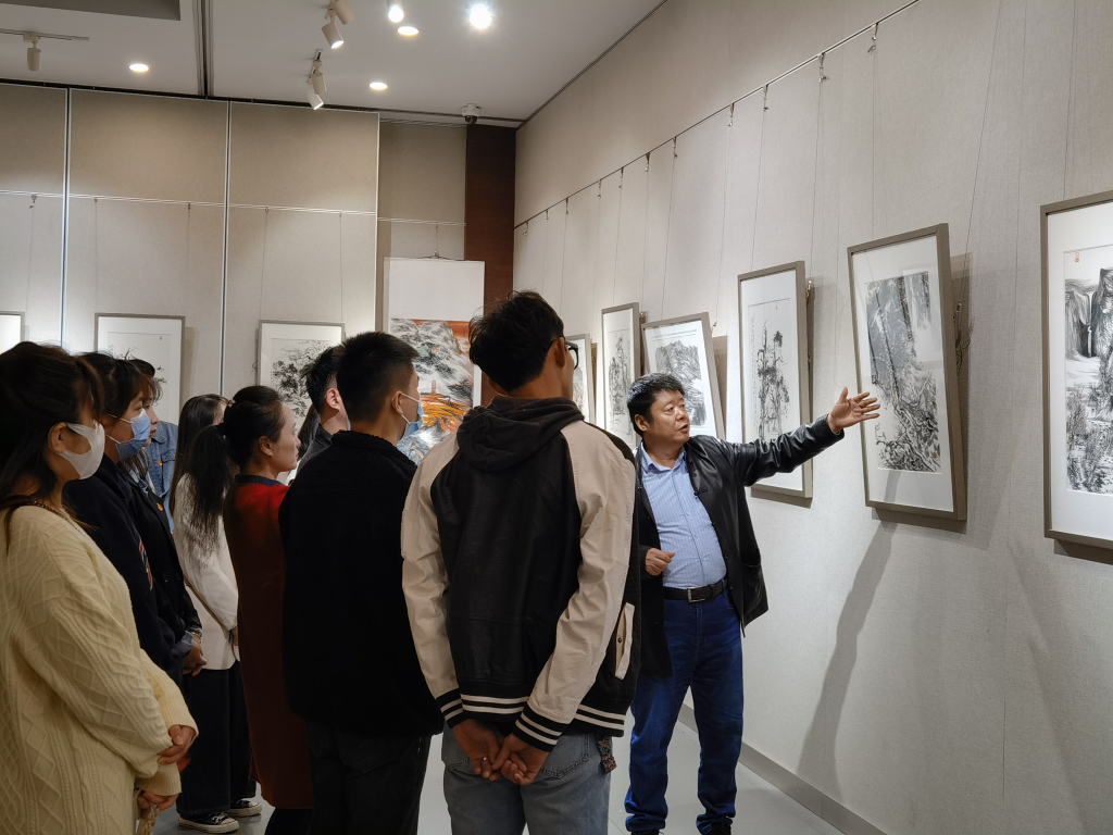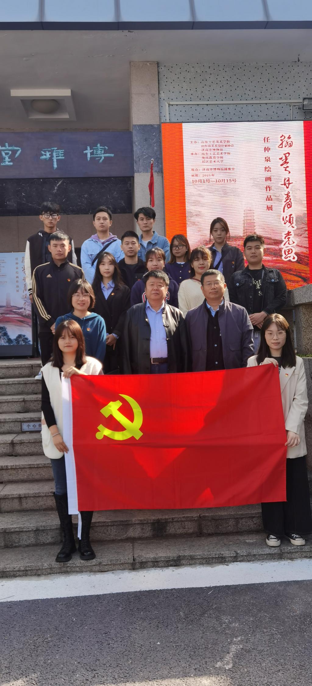 10月13日,为推进党史学习教育走深走实,建筑与景观设计学院学生党支部赴济南市博物馆观看“翰墨丹青颂党恩”任仲泉绘画作品展,开展主题党日活动。活动由建筑与景观设计学院学生第一党支部书记褚丁庆主持,党总支书记张东深参加。继续教育学院党总支书记、硕士研究生导师、山东省美术设计家协会副主席、山东泰山国画院副院长任仲泉教授为同学们进行了详细讲解。