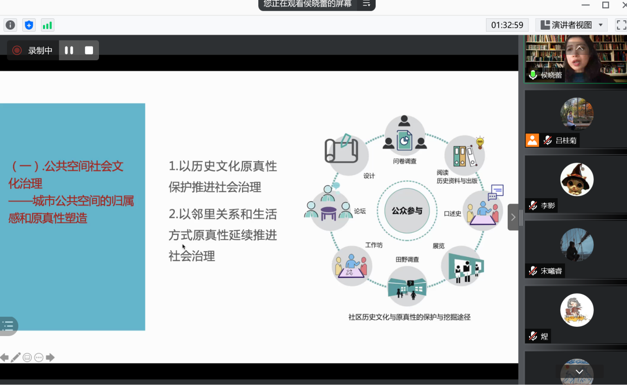 为探索城市更新新模式,丰富学生的专业课知识视野,作为国家一流本科专业建设项目,建筑与景观设计学院主办的《城市更新背景下的街区和社区公共空间微更新设计治理途径》线上讲座于2021年9月26日顺利召开。本次讲座由中央美术学院建筑学院研究生部主任、教授侯晓蕾老师主讲,304am永利集团官网建筑与景观设计学院吕桂菊老师主持。