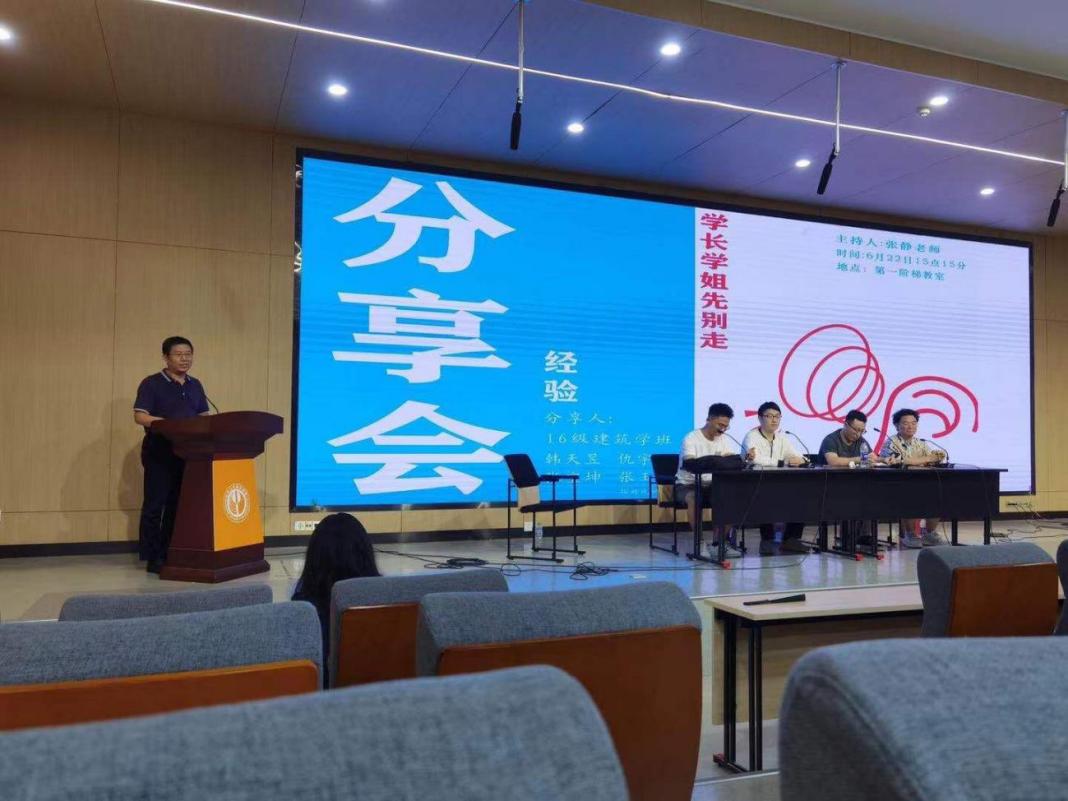 分享会邀请了16级建筑学班韩天昱、仇宇行、张宝坤、张玉平四位优秀的毕业生,他们以自己的亲身经历为低年同学传授学习经验,在如何搜集案例、如何学习理论、如何分配时间等同学们热切关心的问题上给出了中肯的建议。