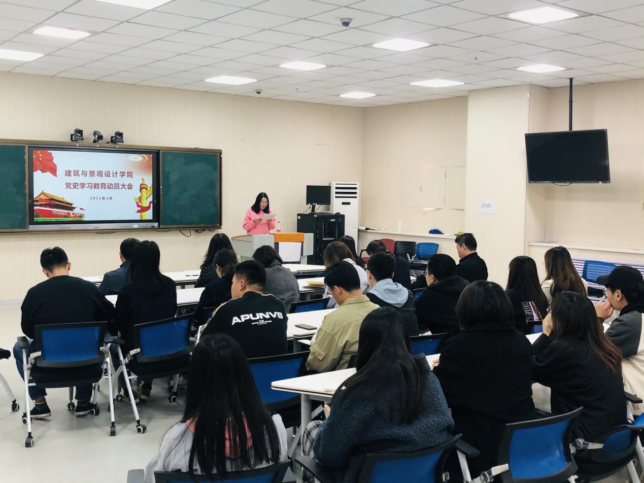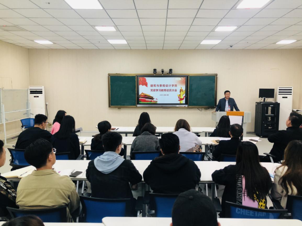 3月25日上午,建筑与景观设计学院在学院智慧教室召开党史学习教育动员大会,会议由学院党总支组织委员褚丁庆主持,党总支书记张东深、教职工党员代表、全体学生党员参加。