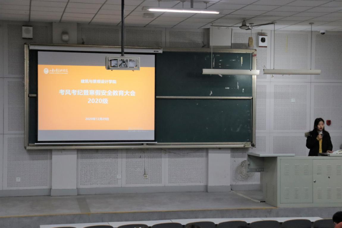 期末及寒假将至,为加强考风考纪及进一步增强学生安全意识,全面做好假期安全教育管理工作,2020年12月29日晚,建筑与景观设计学院各个年级分别于一、二、三、四合堂召开考风考纪暨寒假安全教育大会。大会分别由辅导员陈铁、褚丁庆、田亚洲、韩晓旭主持,各年级全体学生参与。