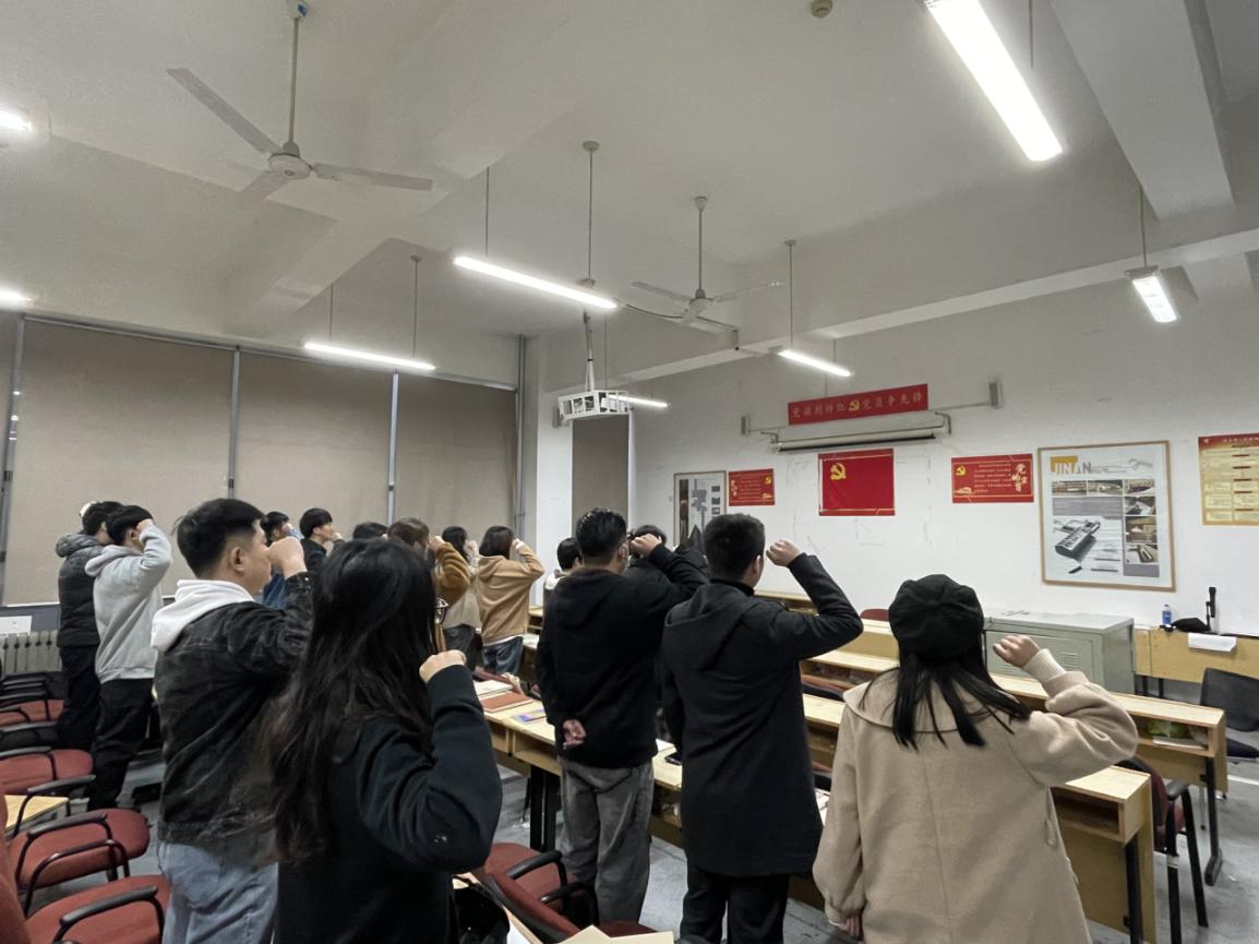 接着,褚丁庆带领学生党员重温入党誓词,引导同学们回顾入党宣誓时的庄严承诺和坚定决心,体会作为一名共产党员的责任感和使命感,要求同学们要以更加饱满的热情和高度负责的态度践行入党誓词,以优异成绩展现共产党员的先锋模范作用,严格要求自己,永葆共产党员的政治本色。