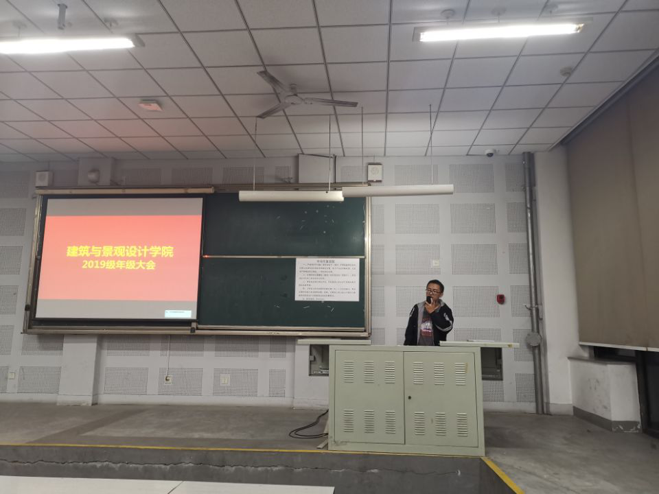 10月11日晚19点30分,建筑与景观设计学院于第八合堂召开2019级年级大会,大会由2019级原辅导员陈铁老师主持,2019级新任辅导员田亚洲及2019级全体学生参加。