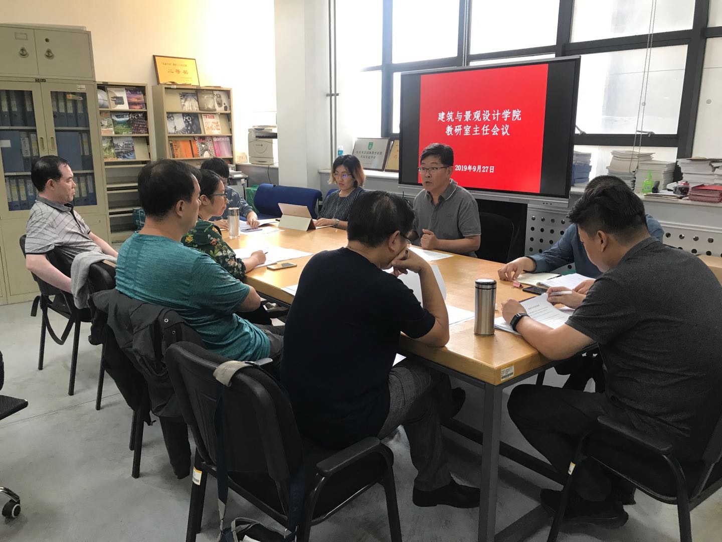 2019年9月27日下午,建筑与景观设计学院全体教研室主任在建筑与景观设计学院办公室B345召开会议。会议由邵力民院长、张东深书记、胡英盛副院长主持。