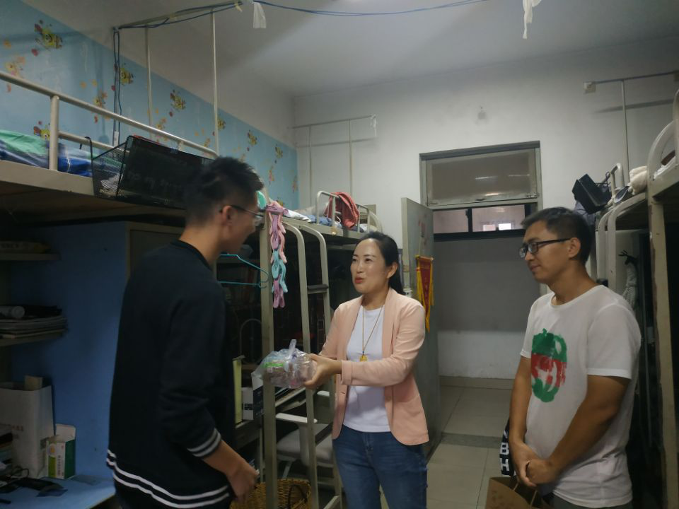 9月13日,建筑与景观设计学院党总支副书记娄彦冒雨早早来到长清校区与在校学生共度中秋佳节。