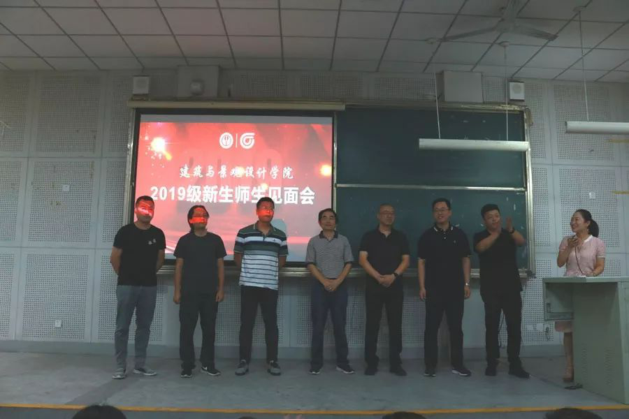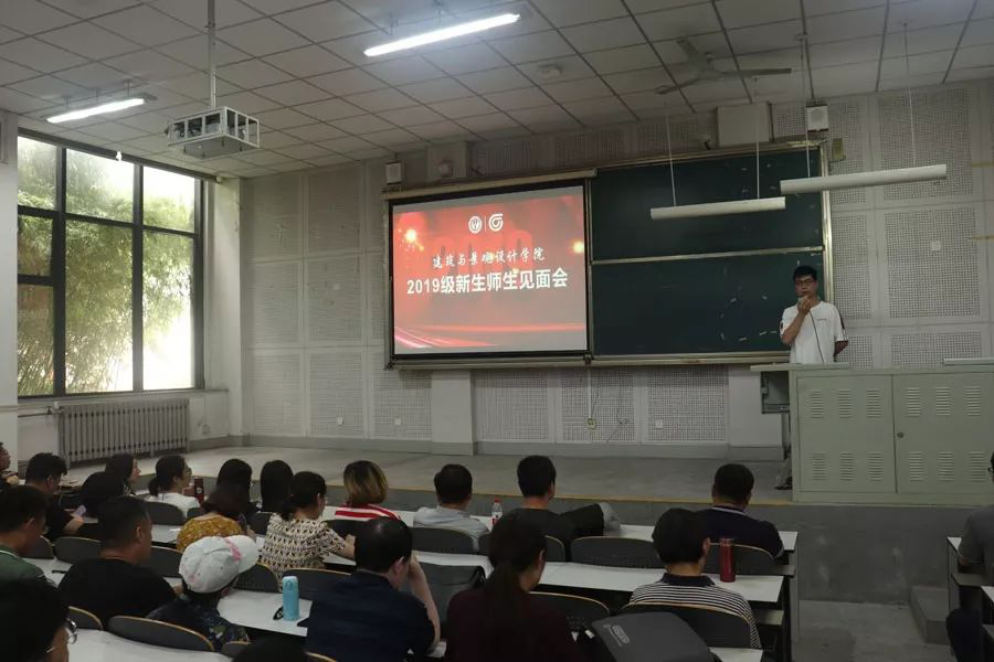 党总支书记张东深上台致辞,他勉励大家要有远大梦想,有执着追求,让每一天都过得有价值。随后,各位老师以专业为单位上台与大家见面。环境艺术设计专业的老师首先登台,娄彦对登台的室内教研室和景观教研室的老师逐一介绍。同学们报以热烈的掌声,环境艺术专业的学生集体起立高呼“老师好”,并向老师鞠躬致敬。建筑学、城乡规划、风景园林专业的师生依次进行。最后登台的是行政岗位的老师,全体学生集体向老师问好。之后,教师代表栾滨上台发言,他对学生的专业学习提出了具体要求。2019级新生代表李汉卿上台发言,他倡议大家珍惜大学的美好时光,为筑就更好的自己而努力。最后,邵力民院长向同学们介绍了学院基本情况,对各个专业的特点和学习任务做了介绍,鼓励同学们早日确立学习目标,培养精英意识,为学院发展和自身的成长不懈努力。会议至此圆满结束。