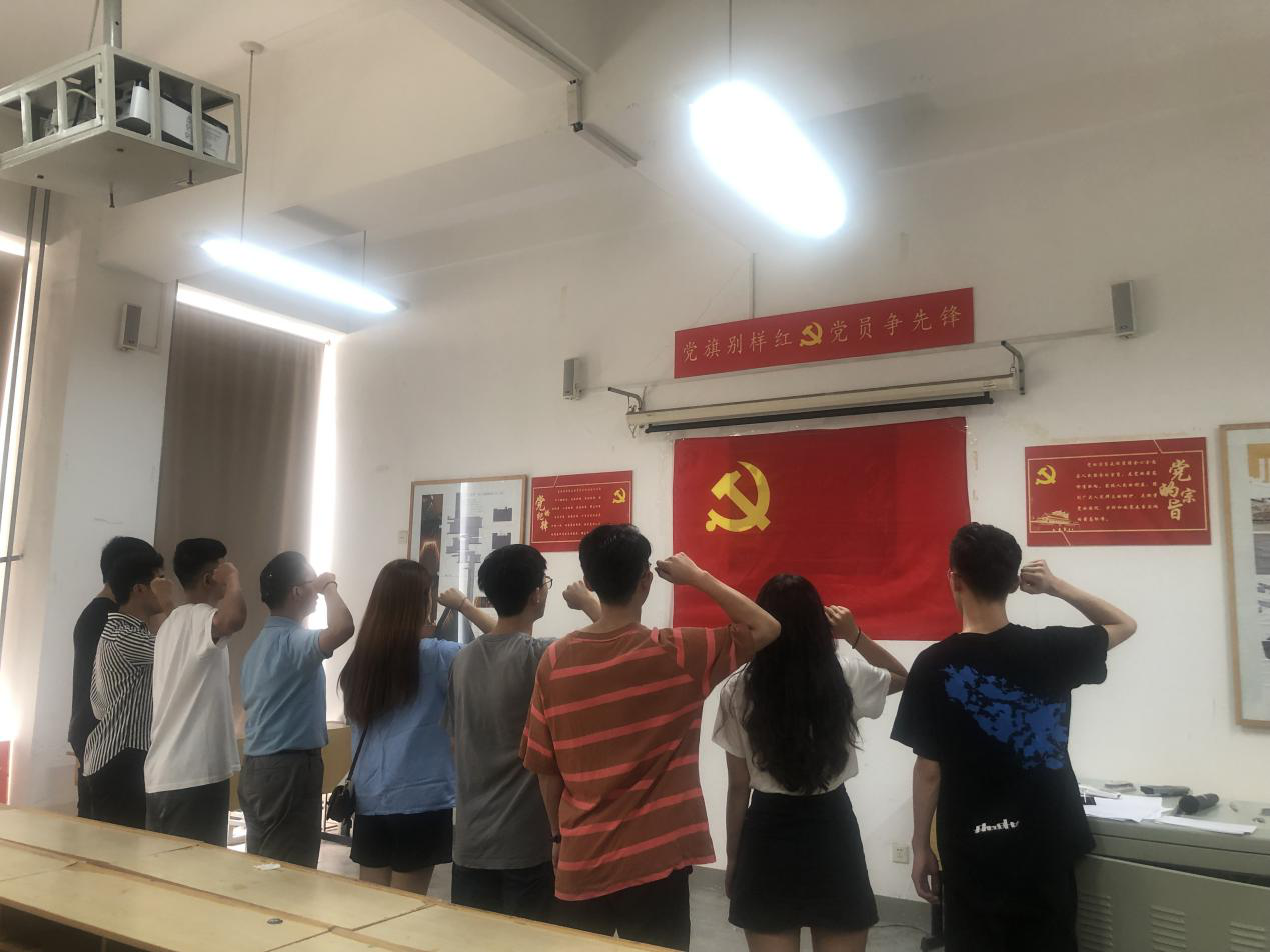 2019年9月5日上午,建筑与景观设计学院学生党支部在多媒体教室举行新发展党员入党宣誓大会,学生第一党支部书记褚丁庆主持。